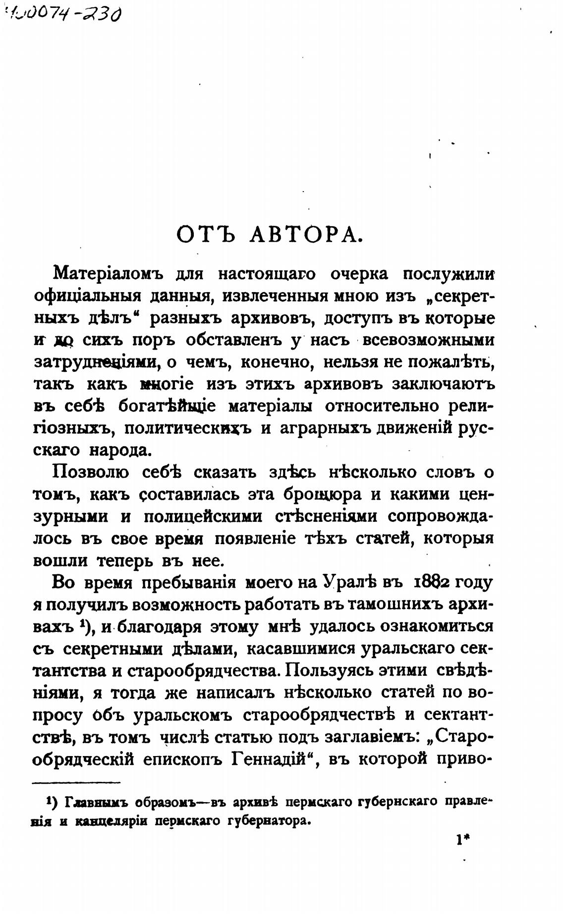 просу объ уральскомъ старообрядчеств± и сектант-