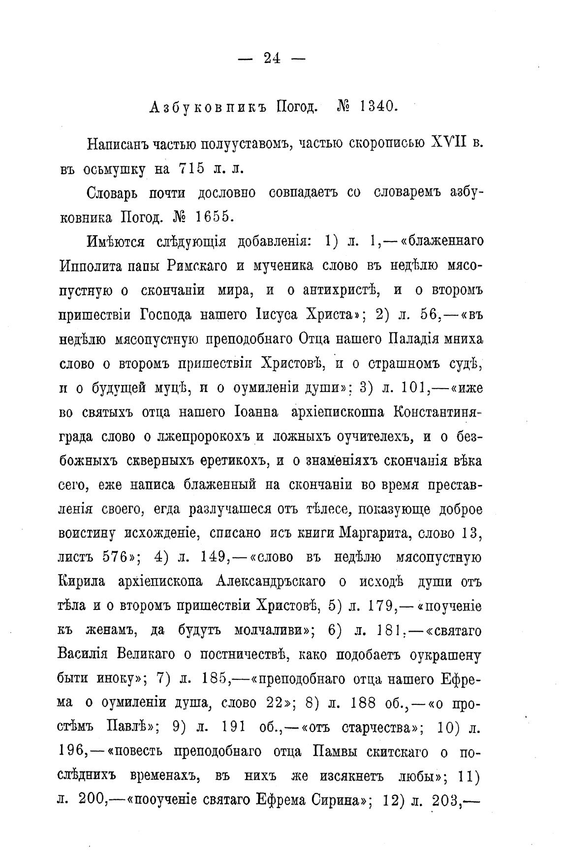 л. святаго Ефрема Сирина»; 12) л. 203,—
