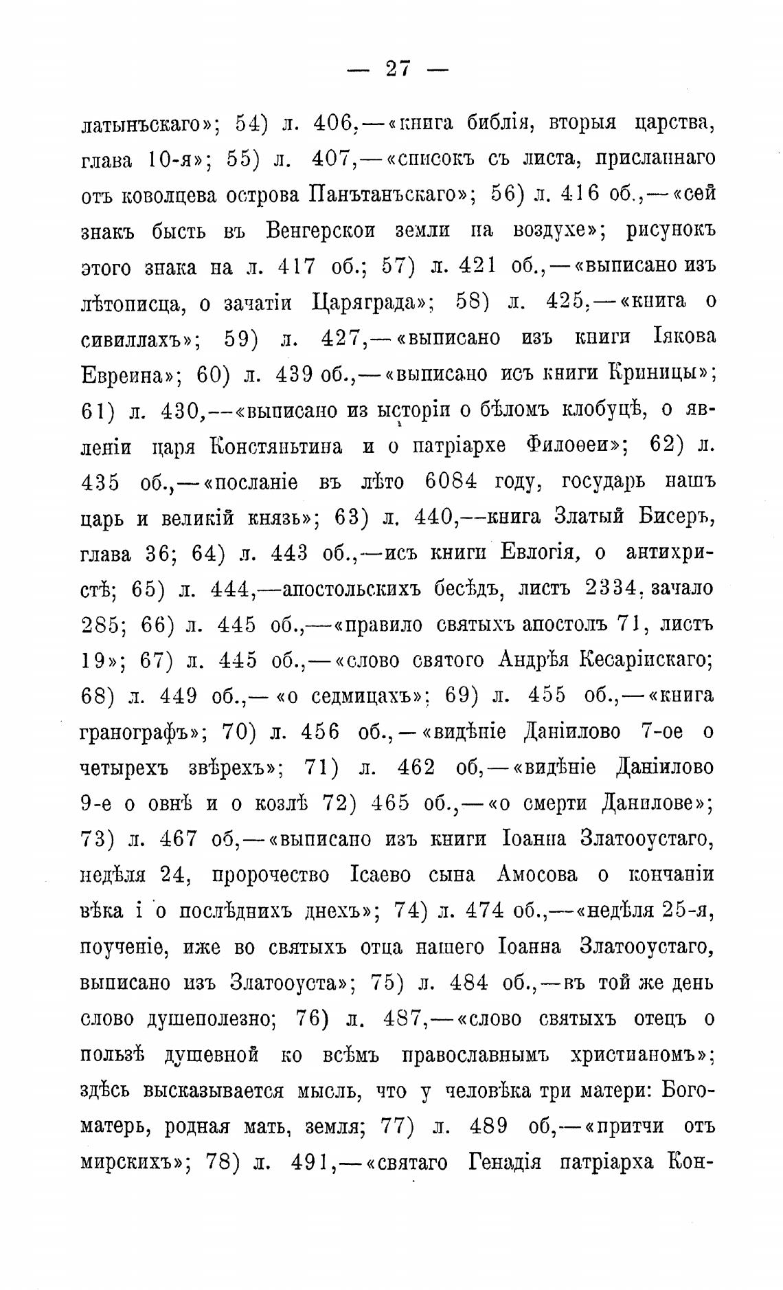 въка i о послъднихъ днехъ»; 74) л. 474 25-я,