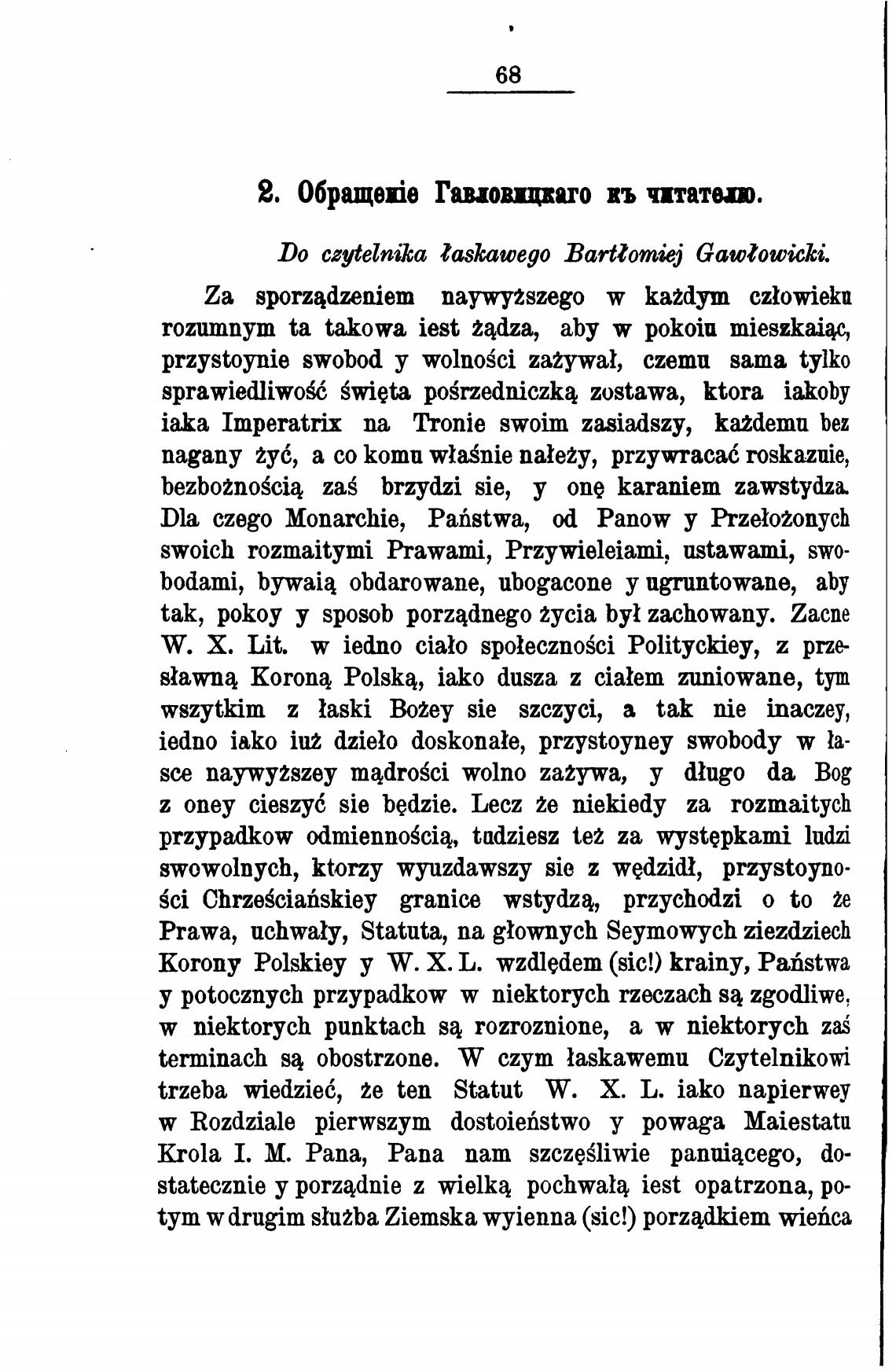 Do czytelni1ca taskawego Barttomiej Gawtowicki.