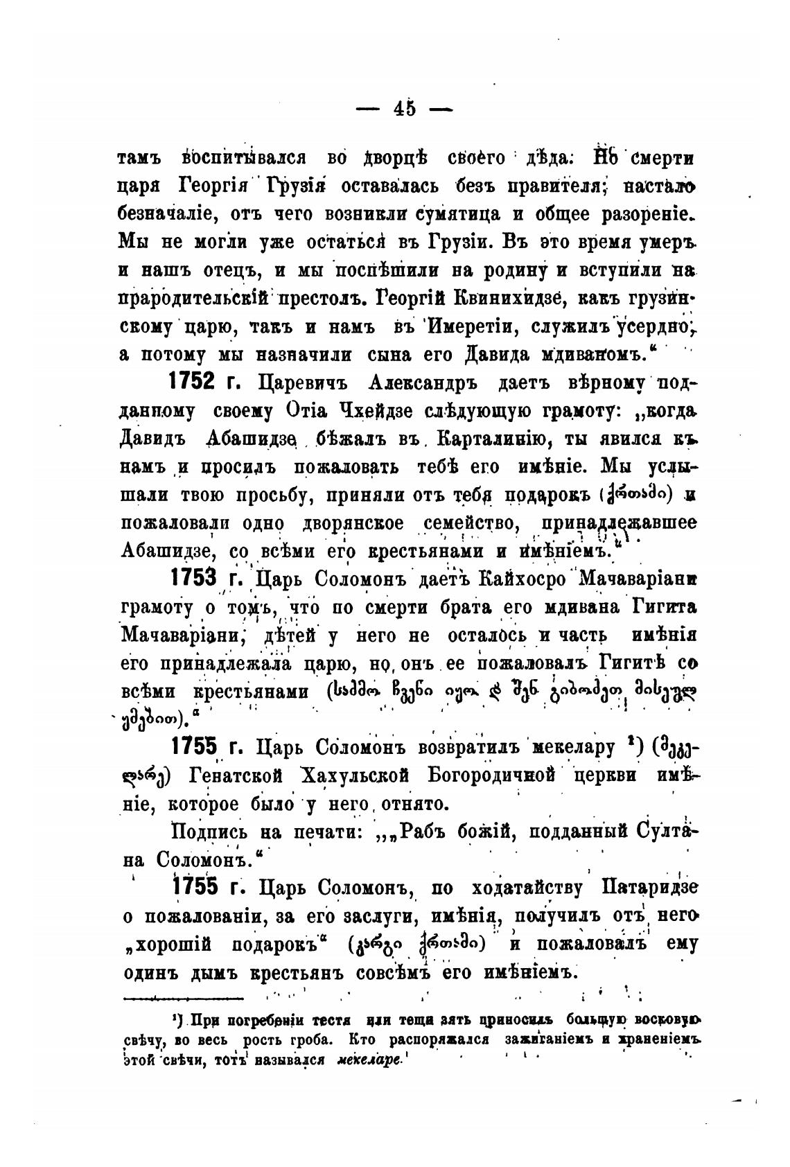 1755 Г. Царь Сбломонъ возйратидъ мекелару 2) (бан-