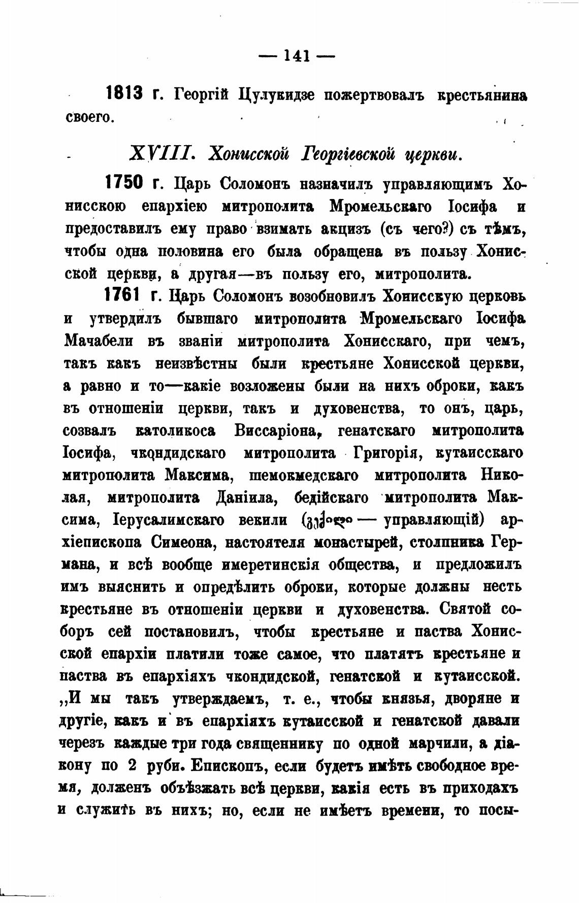 1761 Г. 1$рь Соломонъ возобновилъ Хониссвую церковь