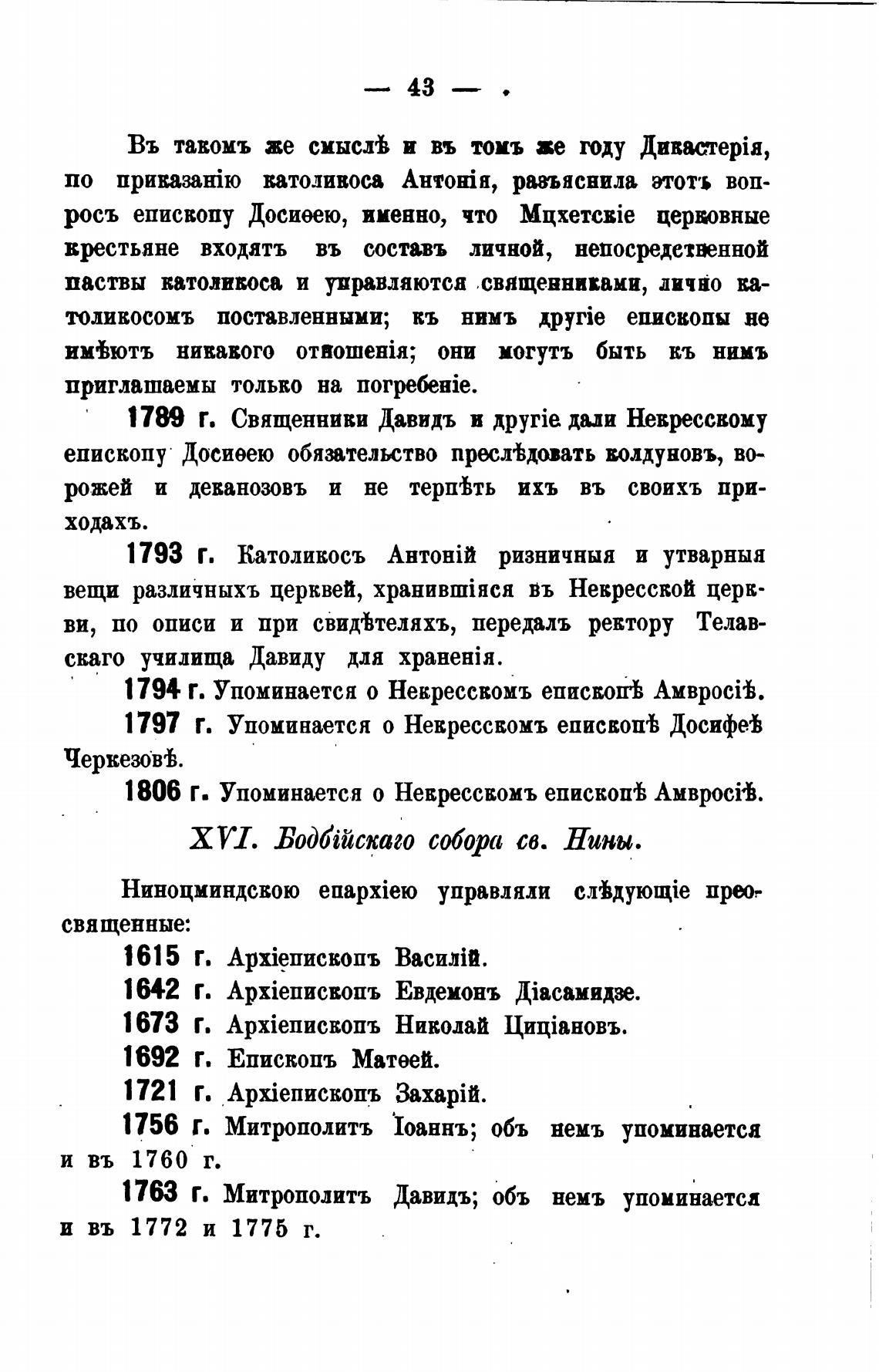 1797 Г. Упоминается о Некрессвомъ еписвоп'Ь Досифе