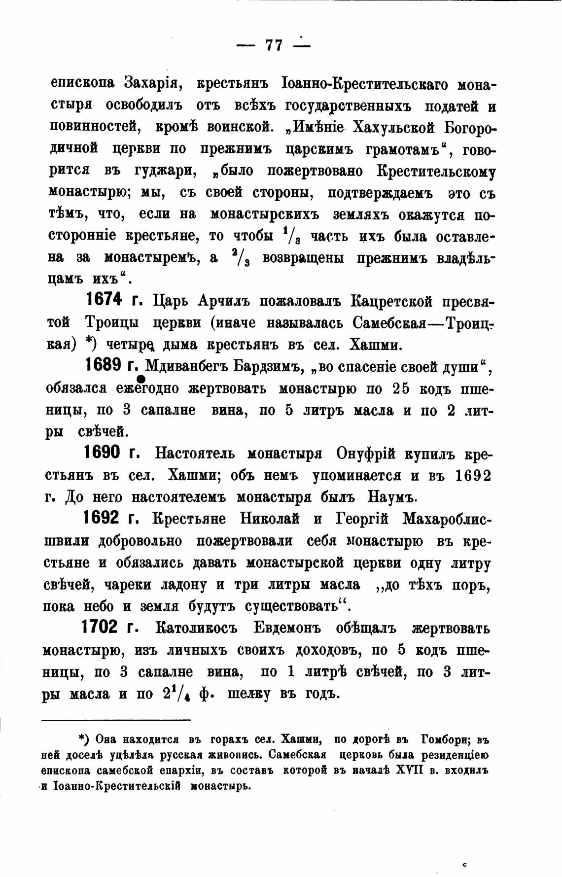 1702 г. Католикосъ Евдемонъ об'ђщалъ жертвовать