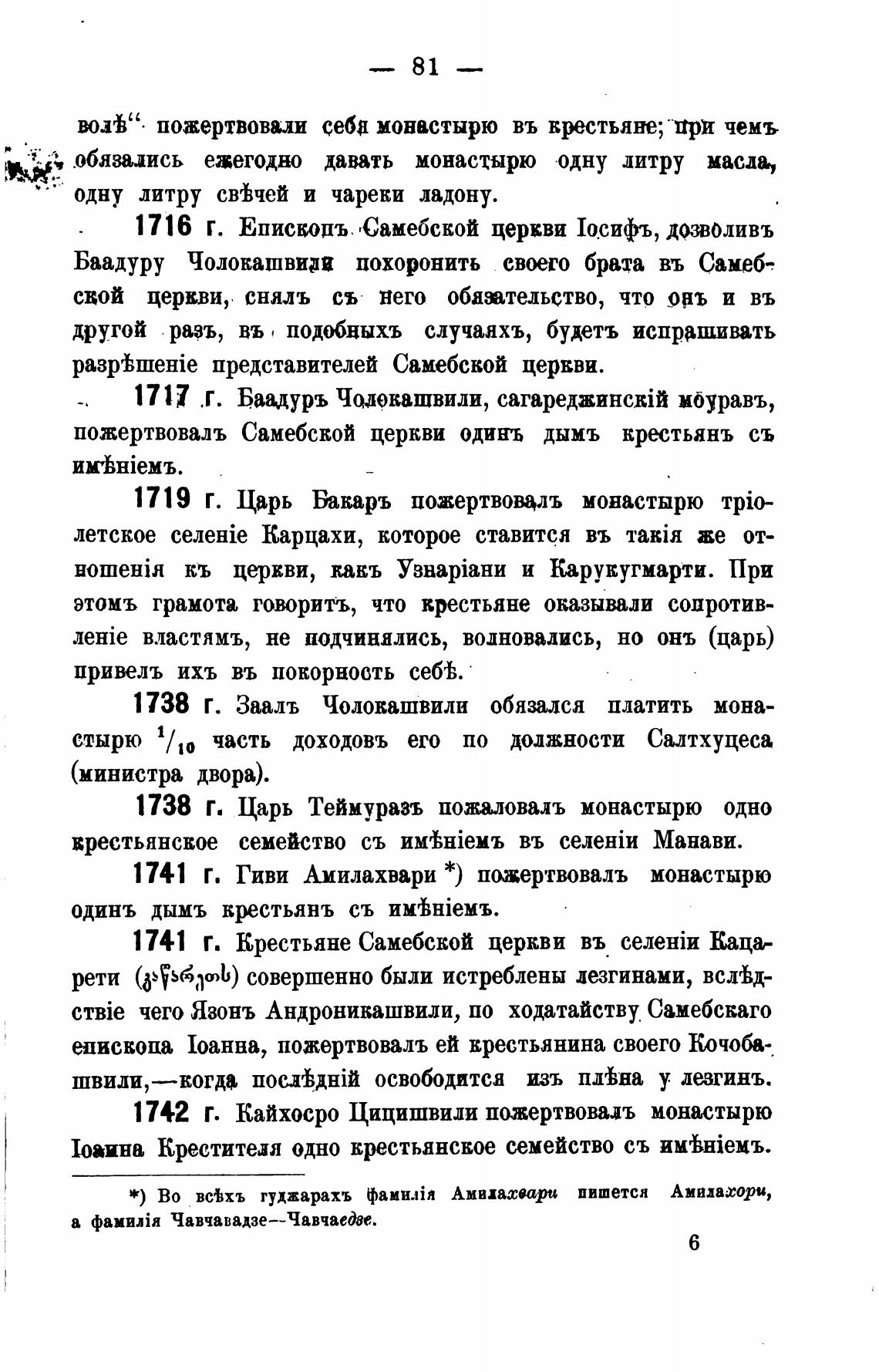 1741 Г. Гиви Амилахвари * ) пожертвовалъ монастырю
