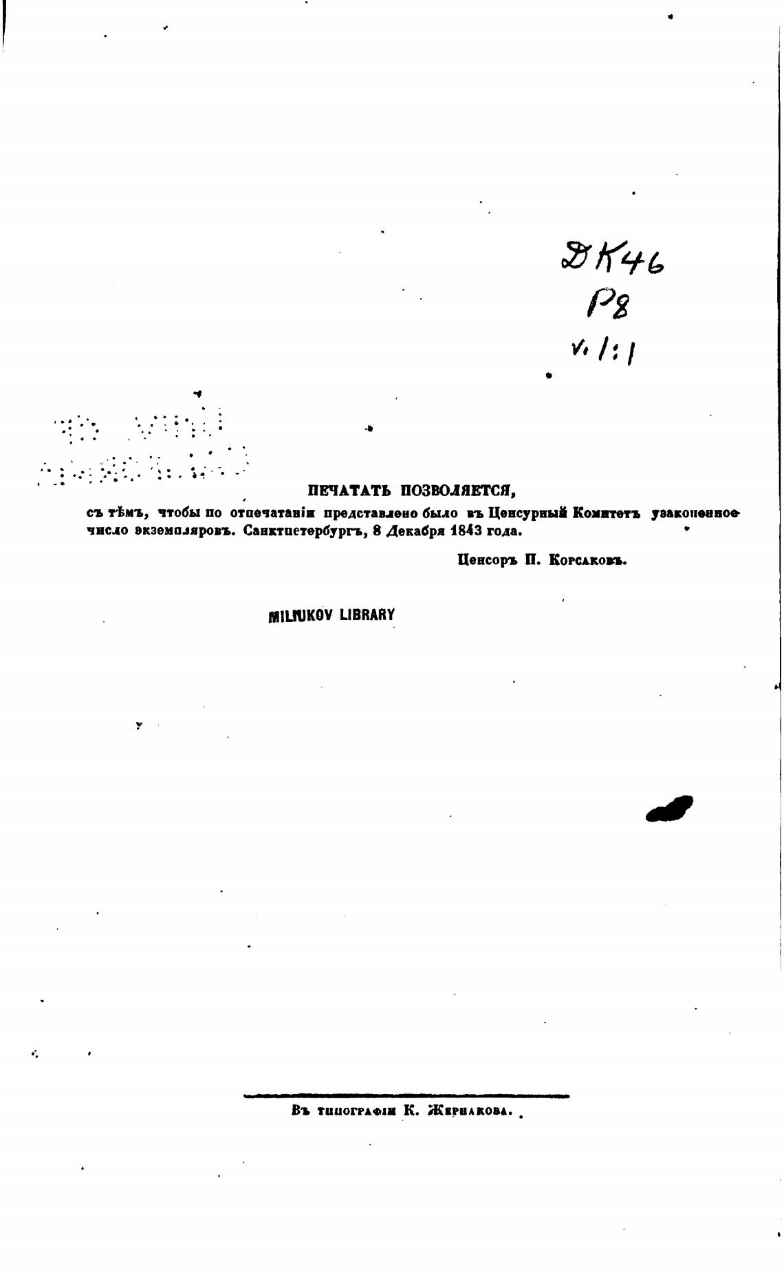 число экземп.зярвъ. Санктиетербургь, 8 Декабря 1843 года.