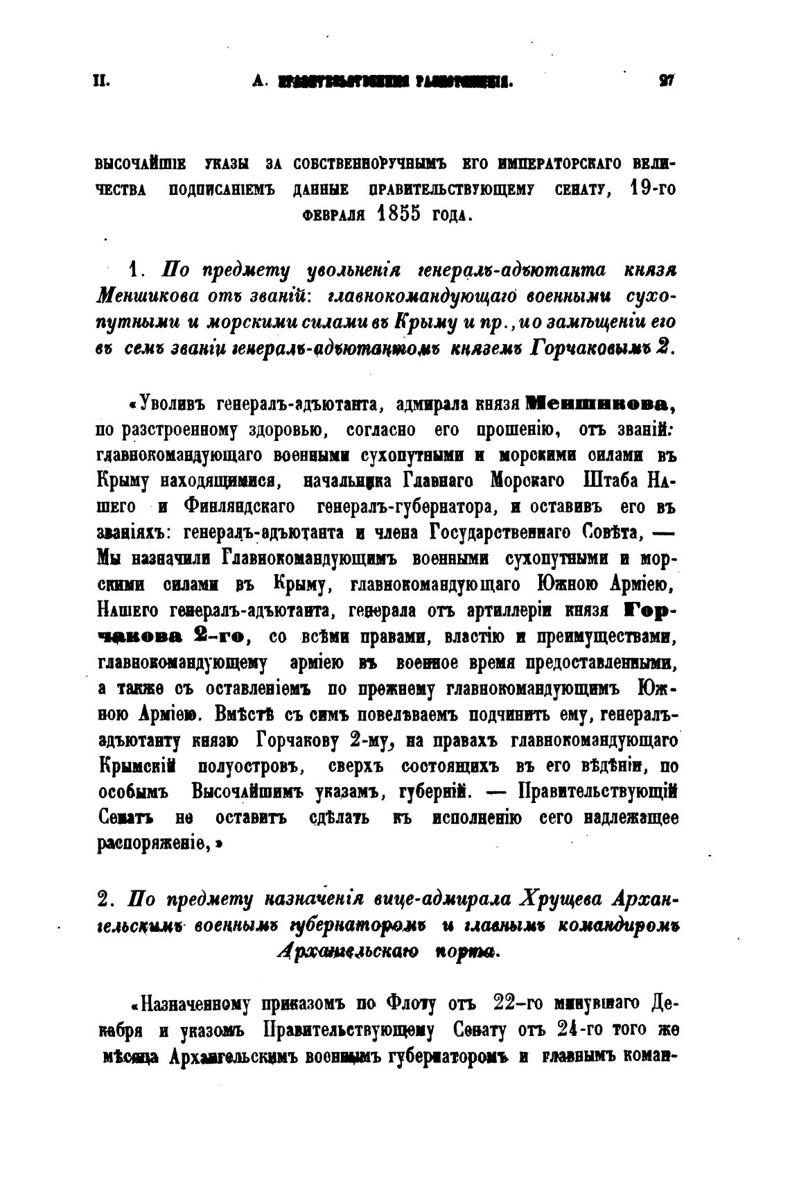 « Уволивъ генералъ-адъютата, адмирала князя Иевшивова,