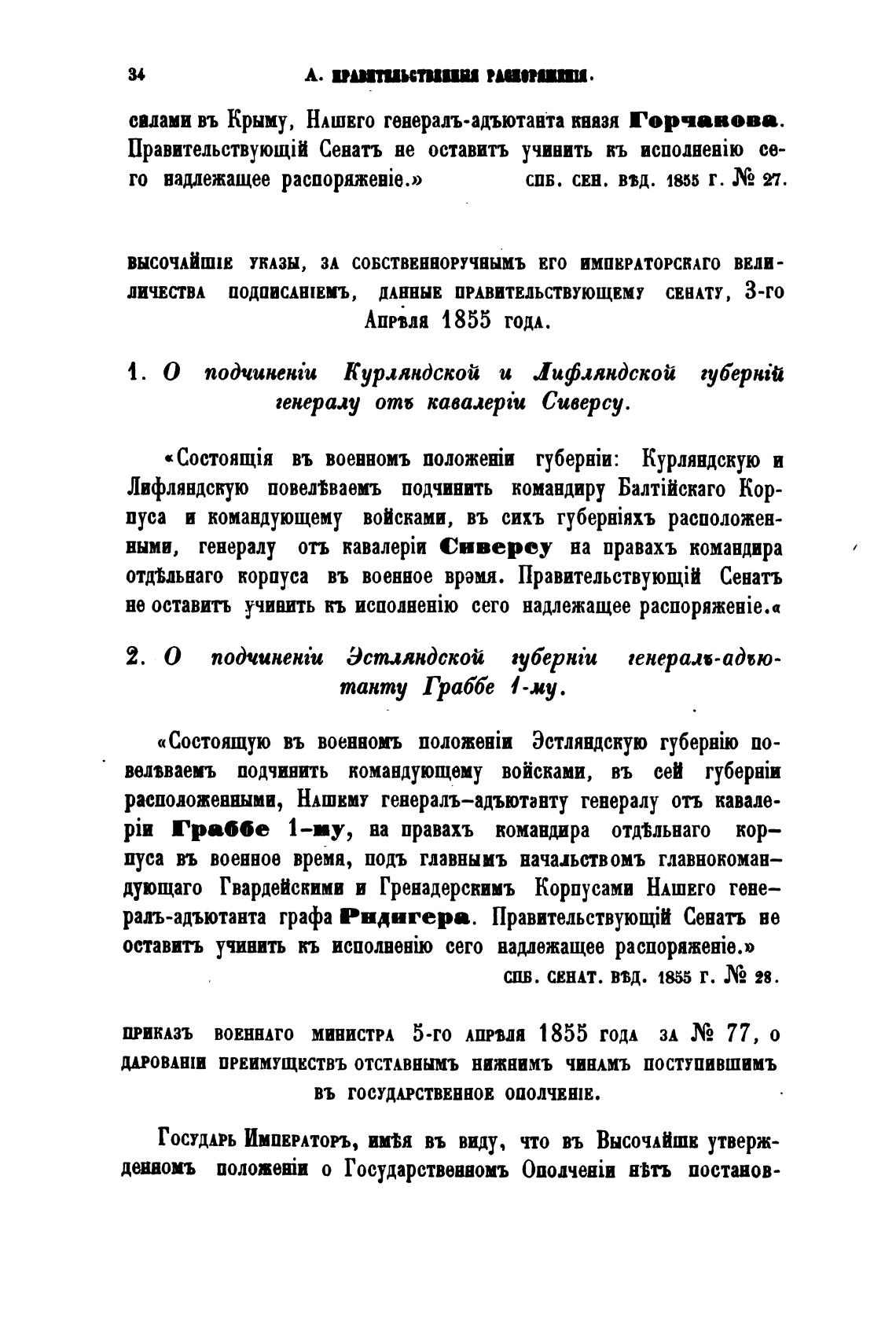 ПРИКАЗЪ ВОЕННАГО МИНИСТРА 5-ГО АППЛЯ 1855 ГОДА ЗА Л) 77, О