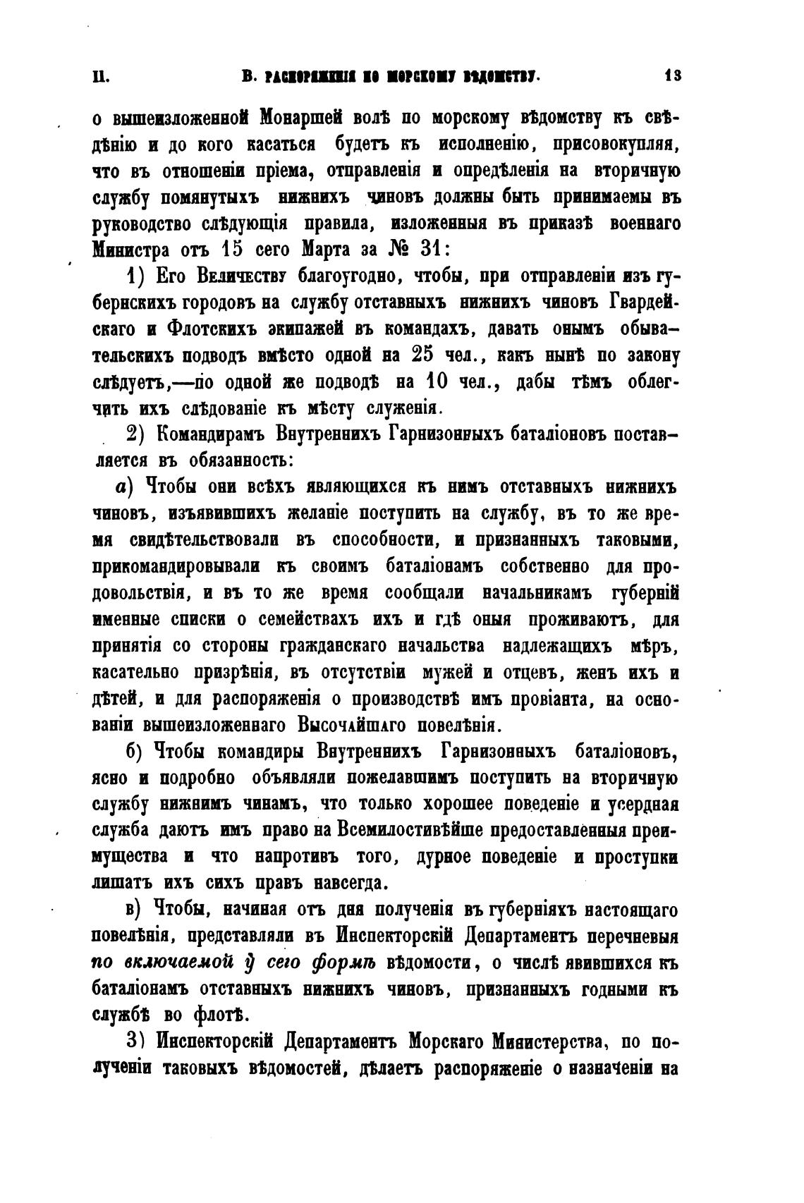 б) Чтобы командиры Внутреннихъ Гарнизонныхъ
