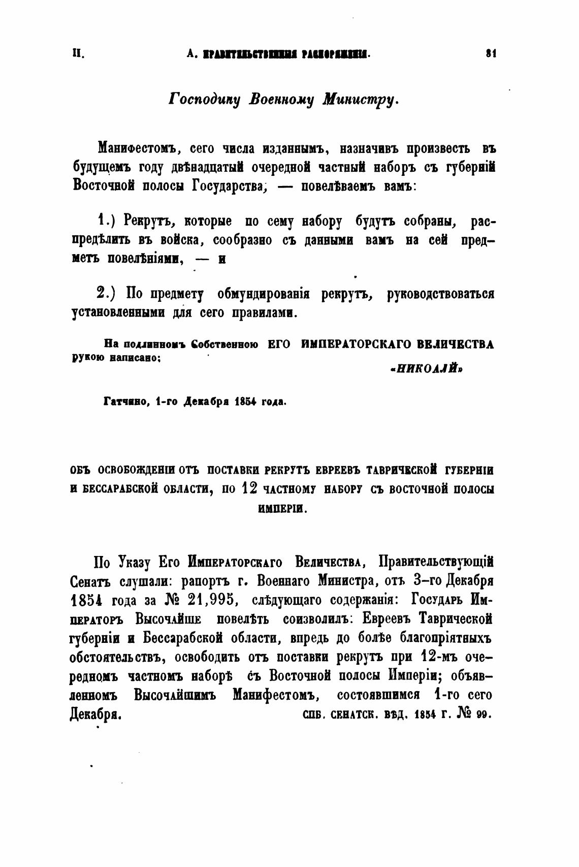 ПЕРАТОРЪ ВЫСОЧАЙШЕ повелиь соизволилъ: Евреевъ Таврической