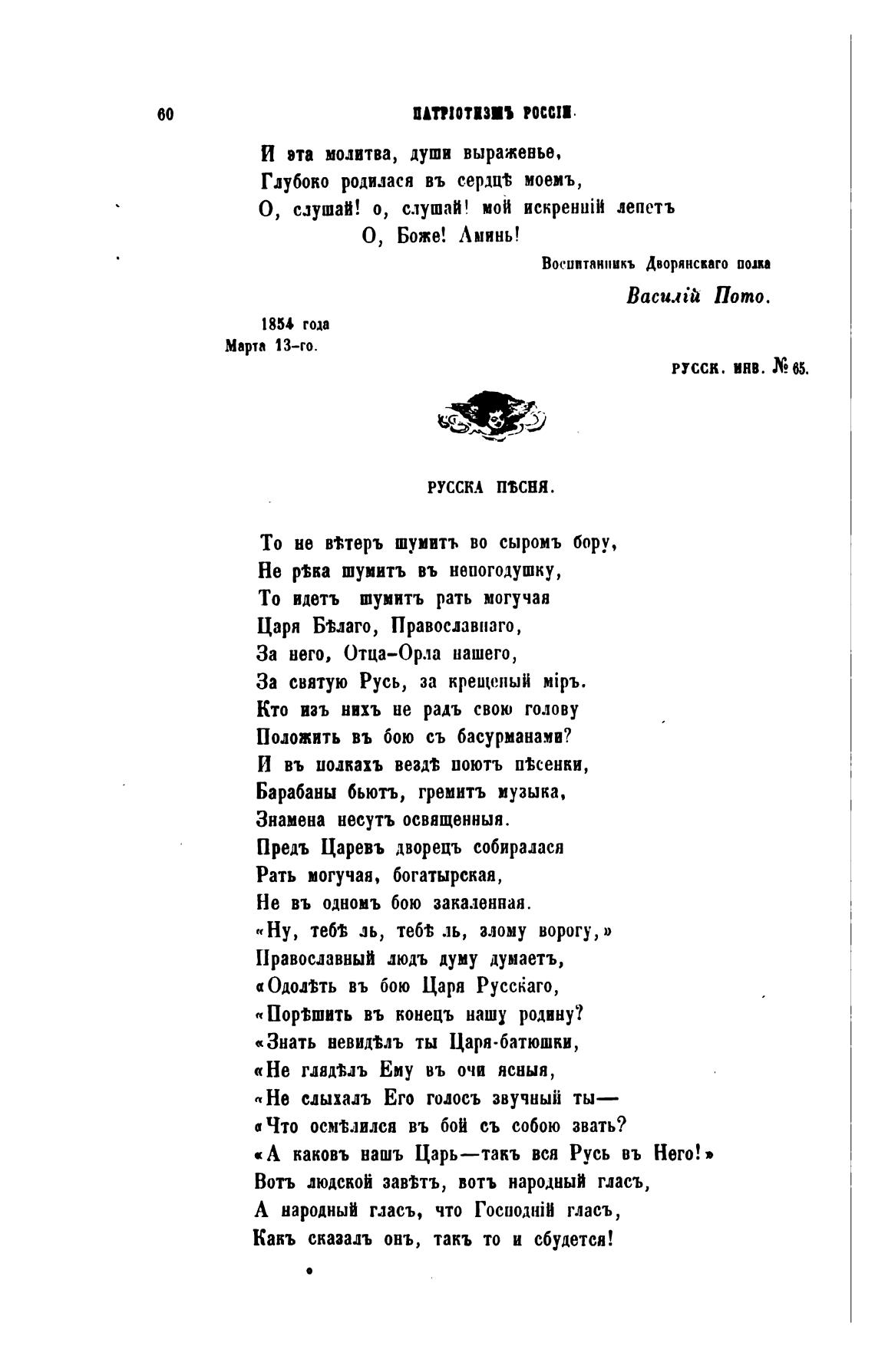 «А каковъ вашъ Царь—такъ вся Русь въ Него!»