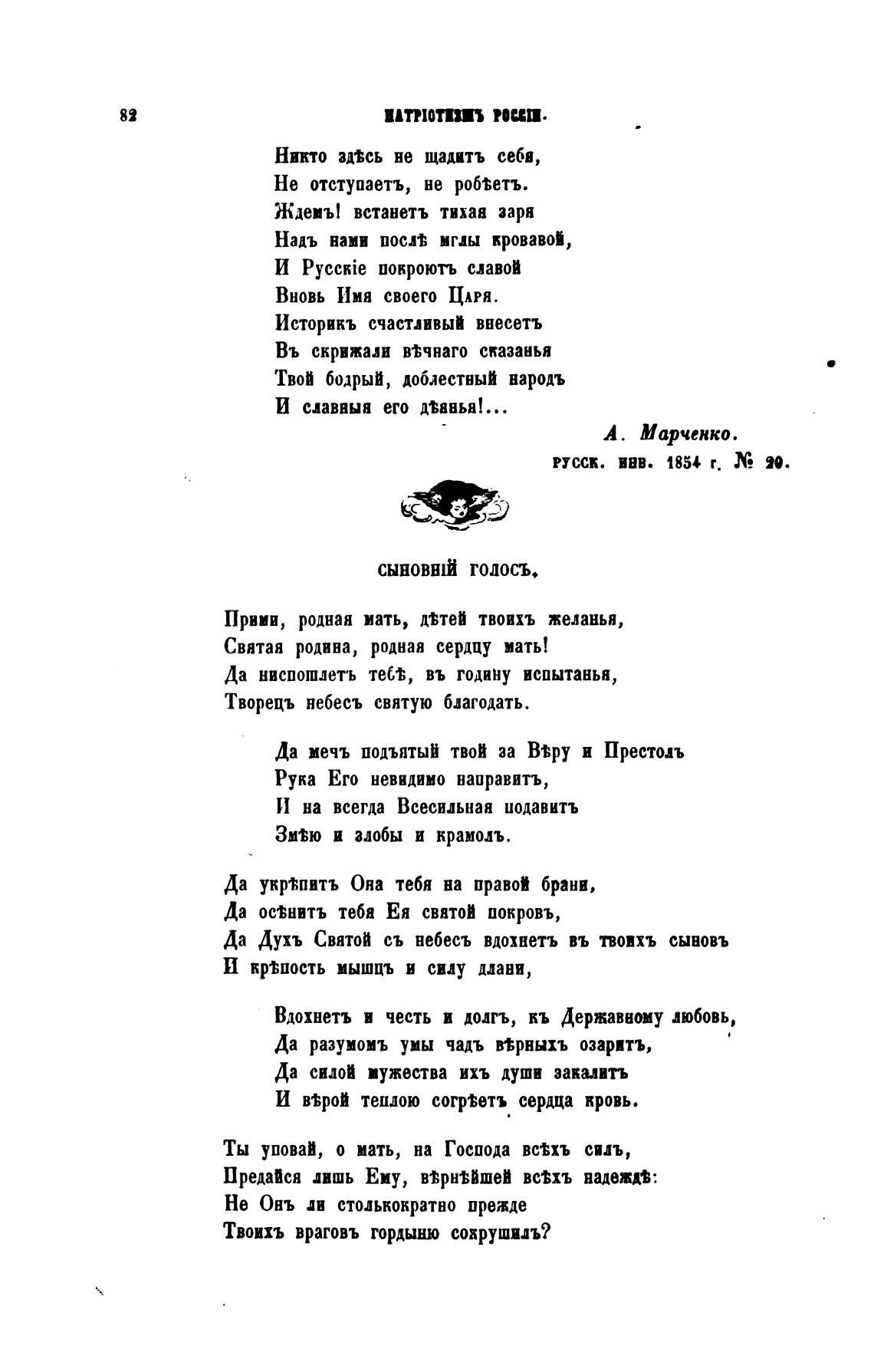 Прими, родная мать, дЁтеИ твоихъ желанья,