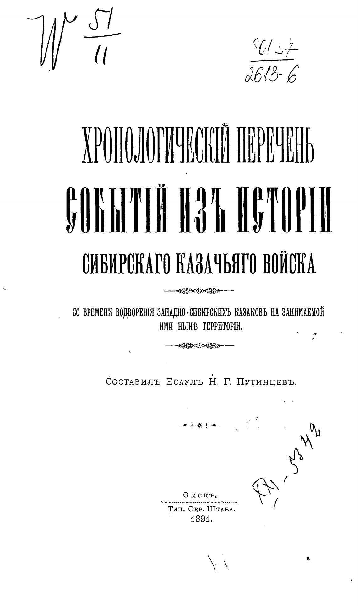 СОСТАВИЛЪ ЕСАУЛЬ Н. Г. ПутинцЕВЪ.