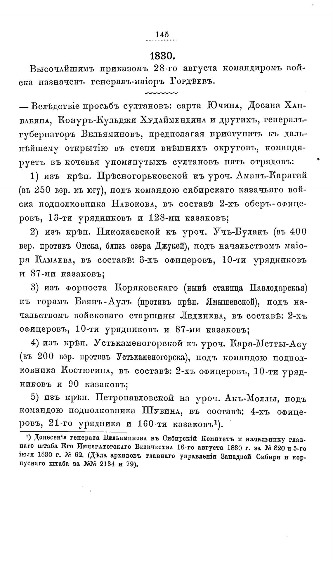 руетъ въ кочевья упомяпутыхъ султановъ пять ОТРЯДОВЪ: