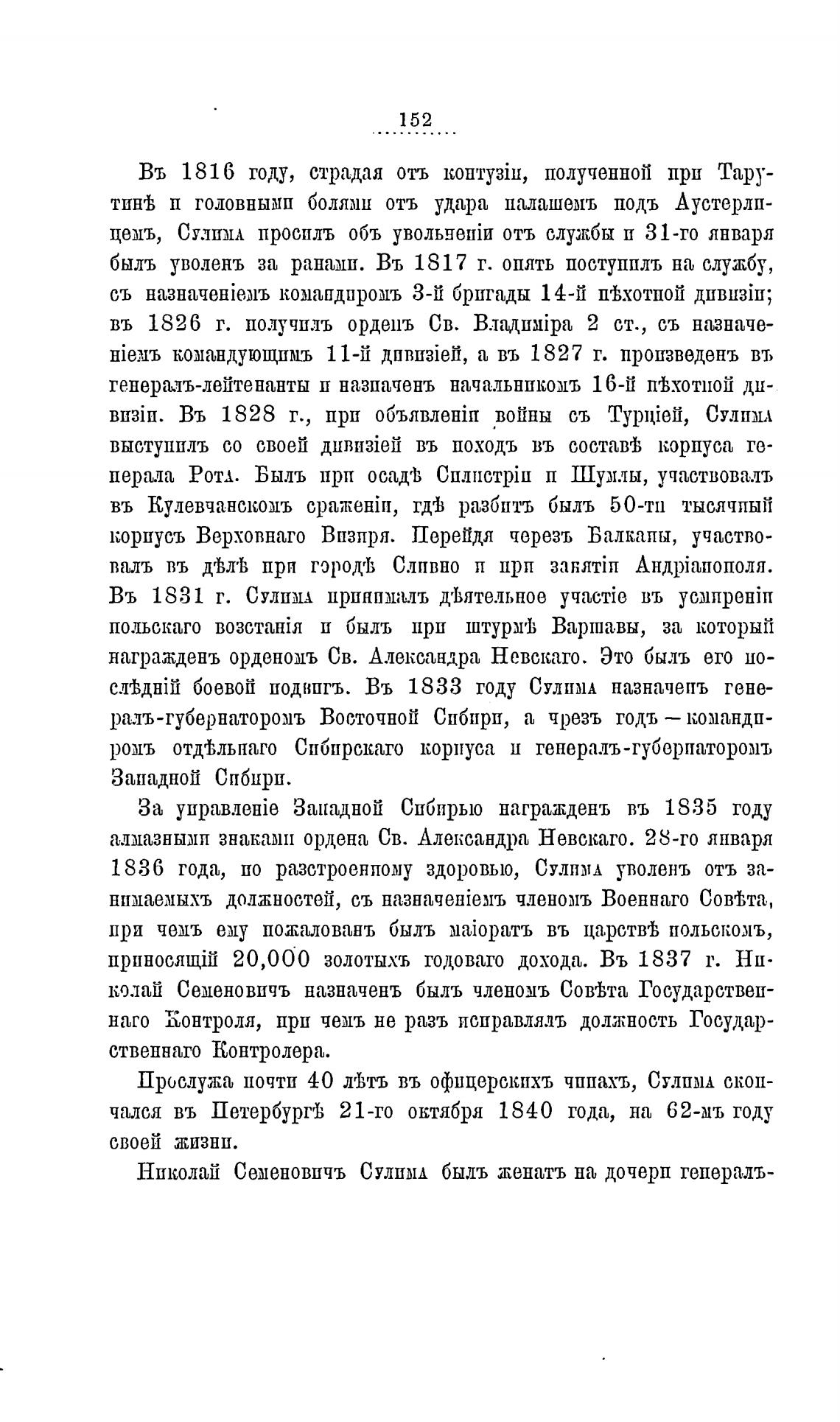 Николай Семеновпчъ Сулпмл быль ленатъ на дочерп гепералъ-