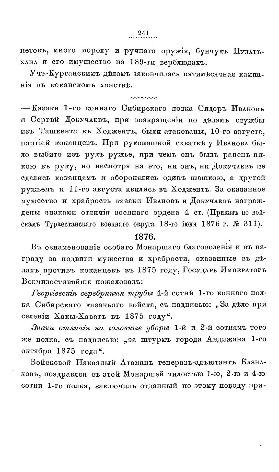 скамь Туркестанскаго военнаго округа 18-го 1876 г. Х2 311).