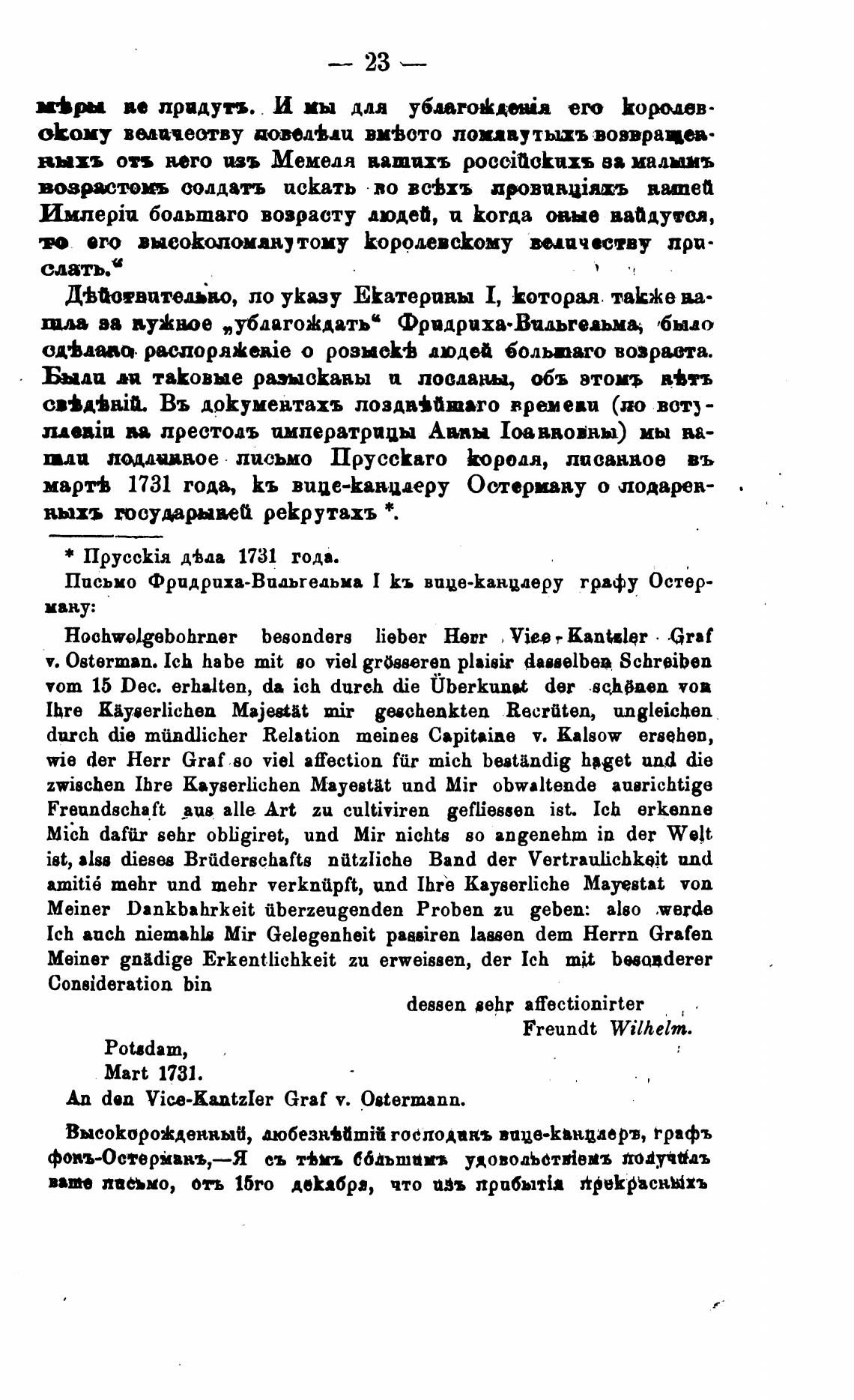 Письмо Фридриха-Виаыедьма Кь вице-Каниаеру графу Остер-