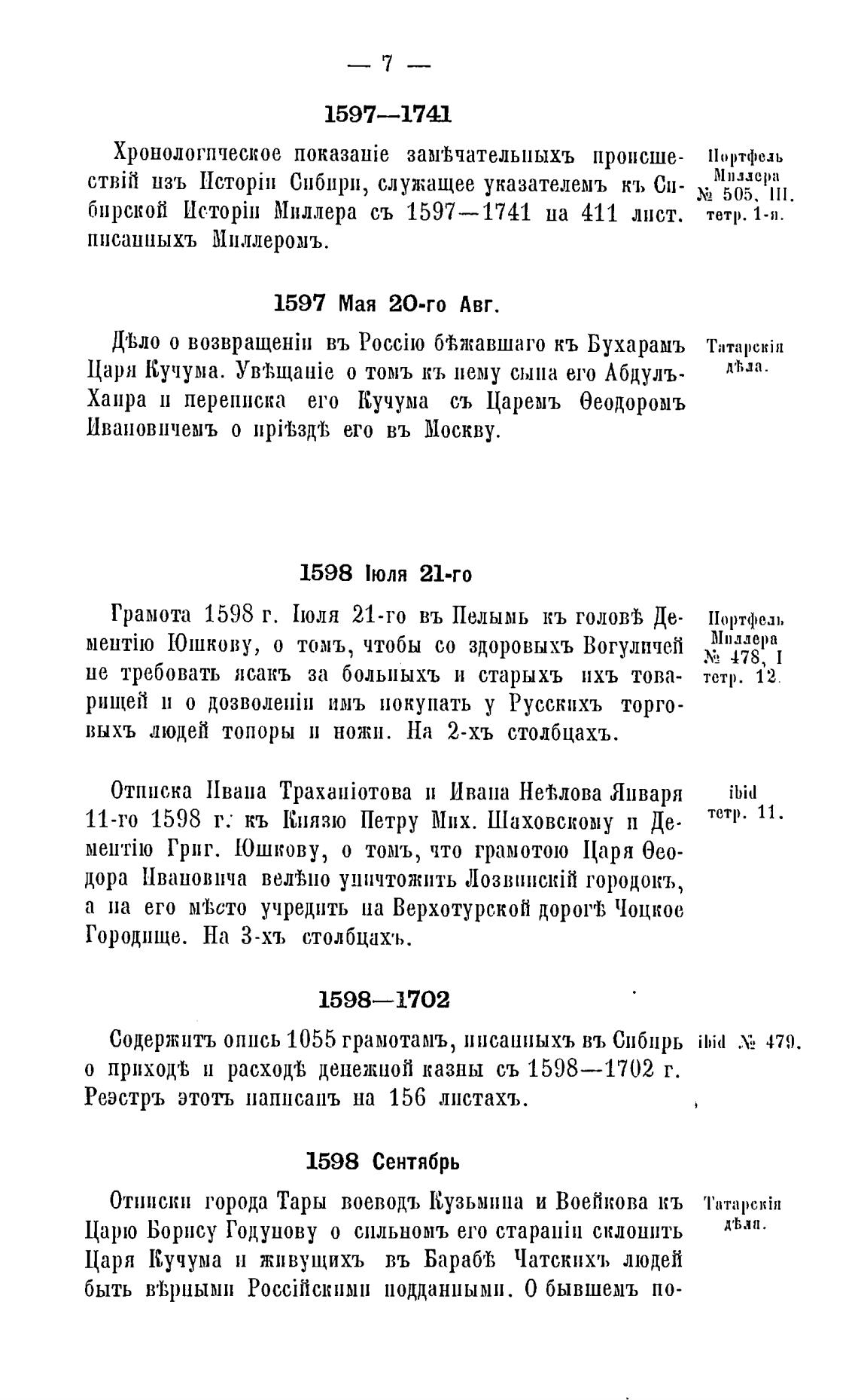 Содержитъ опись 1055 грамотамъ, писаииыхъ въ Сибирь ibid х, 479.