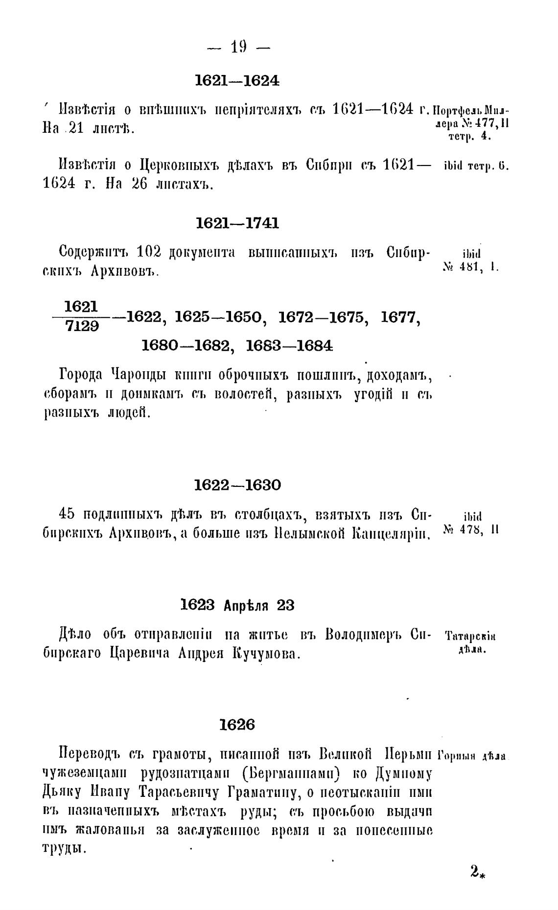 о впеђшпих•ъ съ 1621—1624 г. мил-