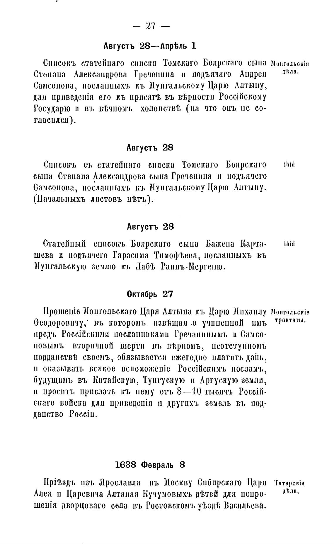 Самсонова, нослтшы,хъ кь Мунгальскому Царю Алтыну,