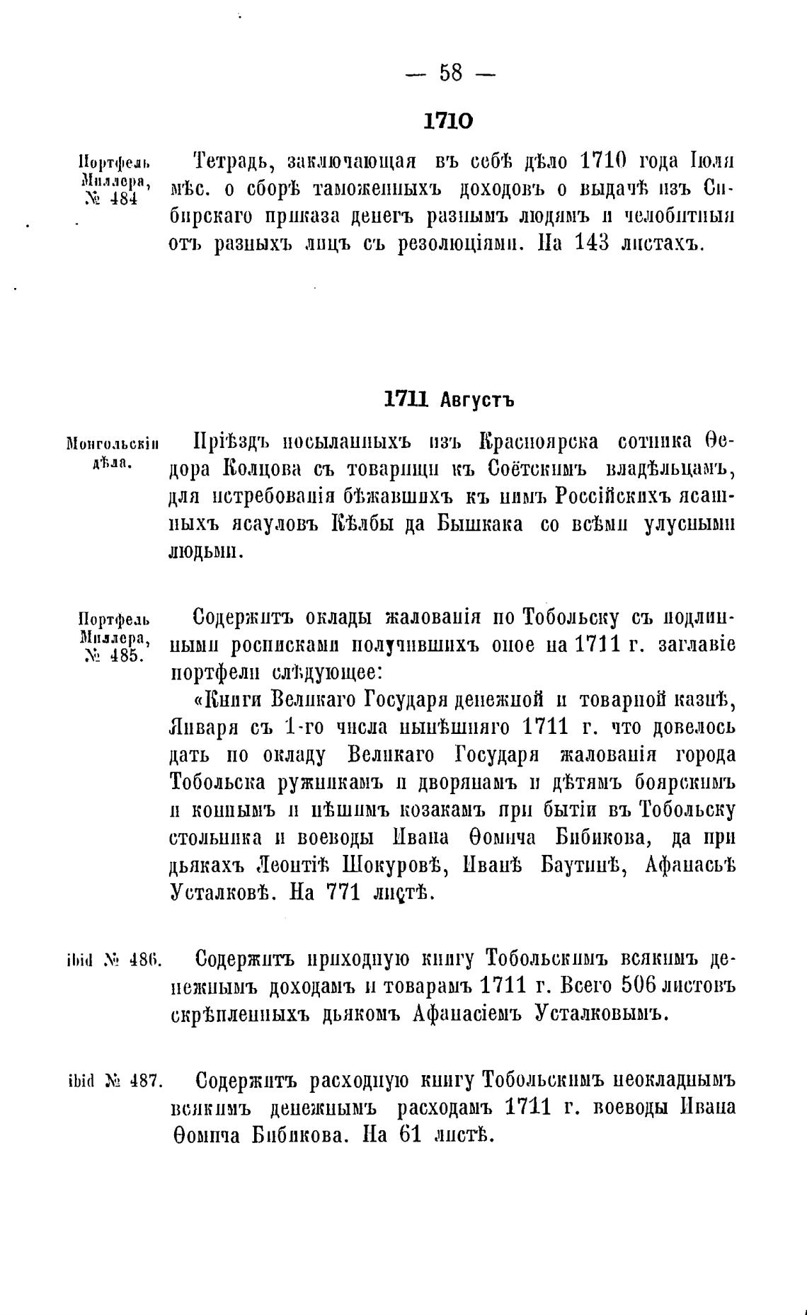 нежнымъ доходамъ и товарамъ 1711 г. Всего 506 листовъ