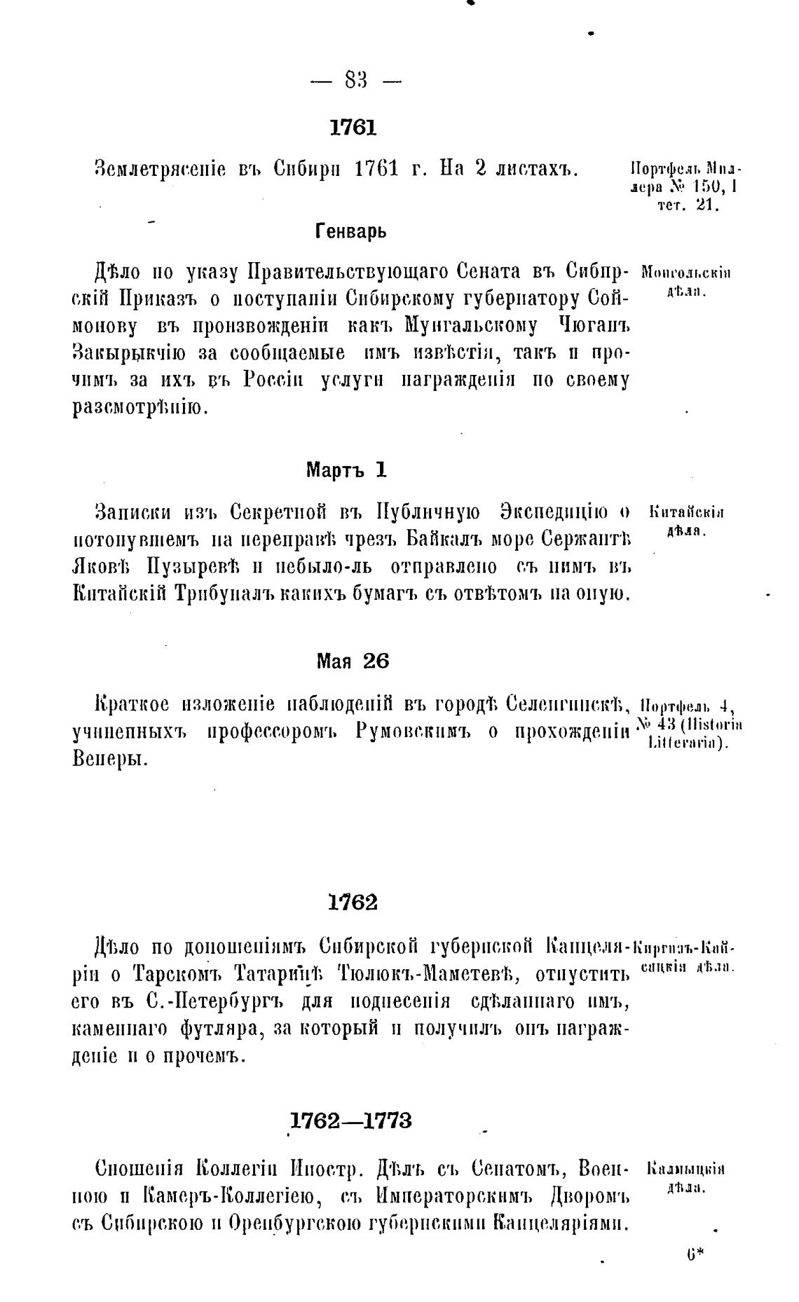 Землетряс.мйе въ Сибири 1761 г. На 2 листахъ.