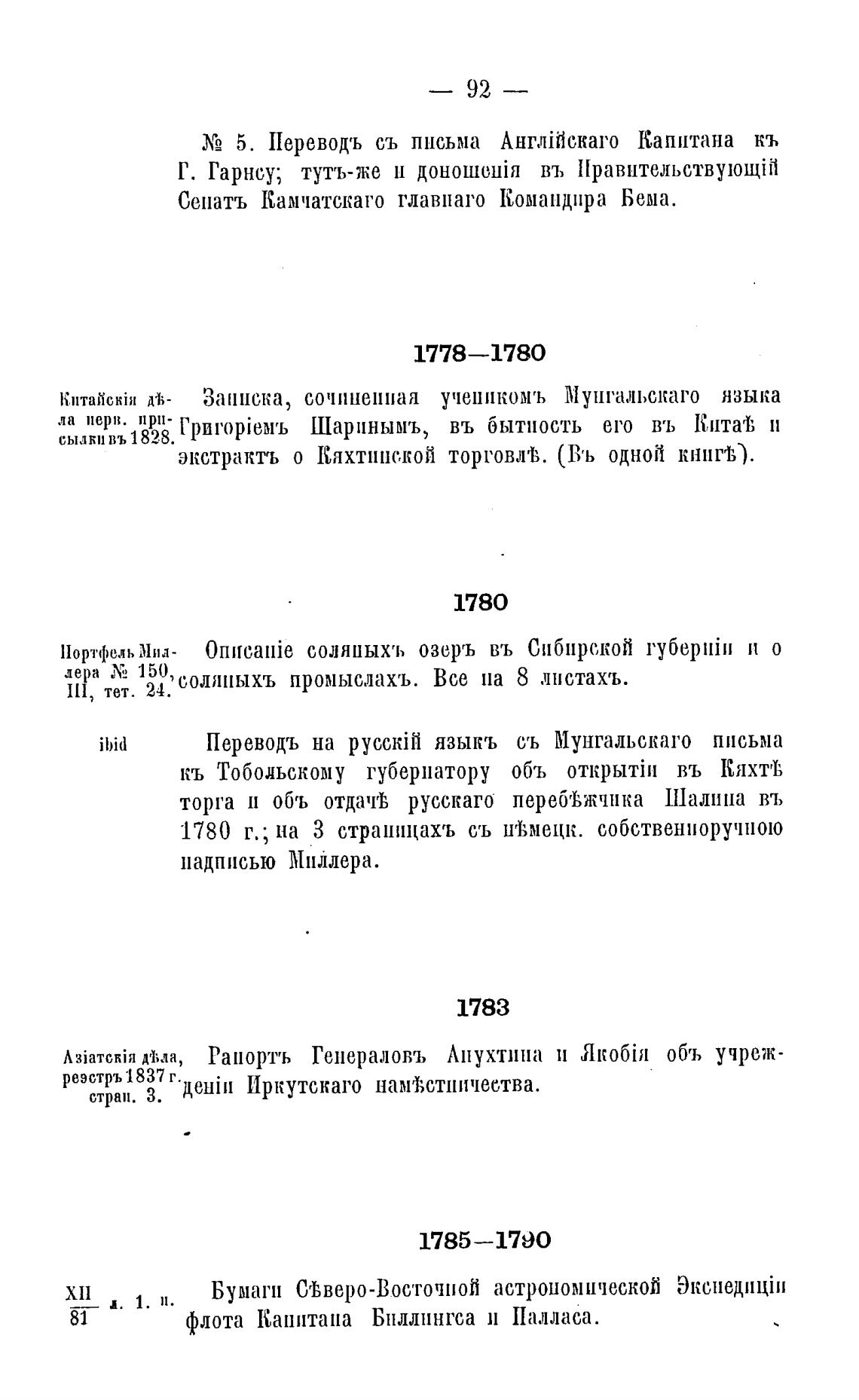 1780 г.; на З страницахъ съ Н'ВмеЦК. собственноручною