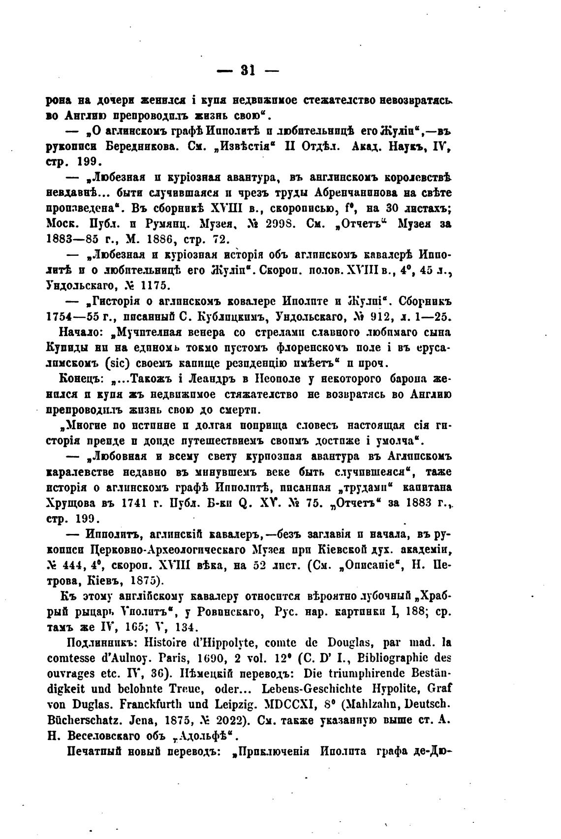 Подлинникъ: Histoire d'Hippolyte, comte de Douglas, рат lnad. Иа