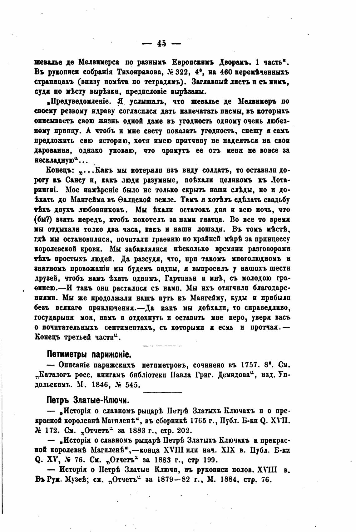 ,IIpeMBexoueHie. Я услыша.дъ, что шевалье де Мепимеръ шо
