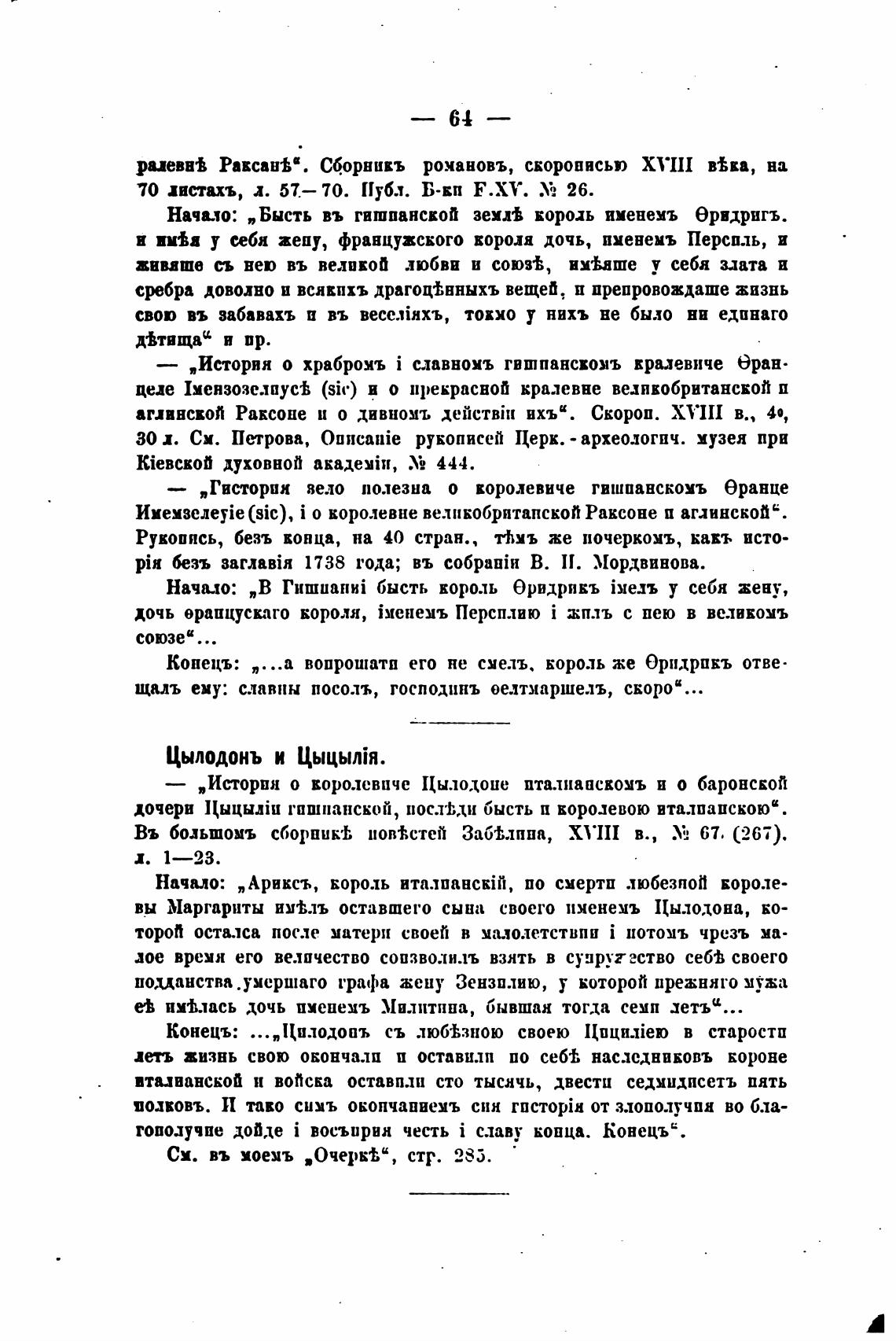 Въ большомъ сборнику, повТ.стей ЗабТ,лппа, XVIII в., У] 67. (267).
