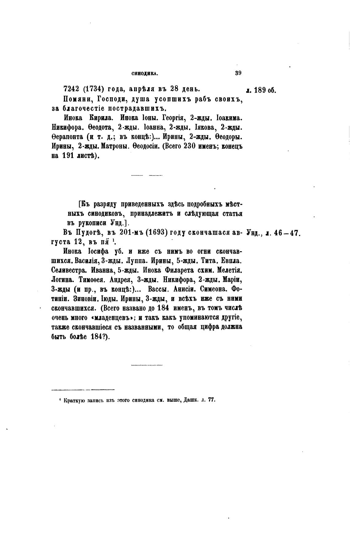 Въ ПудогЬ въ 201-мъ (1693) году скончашася ав- Унд.,