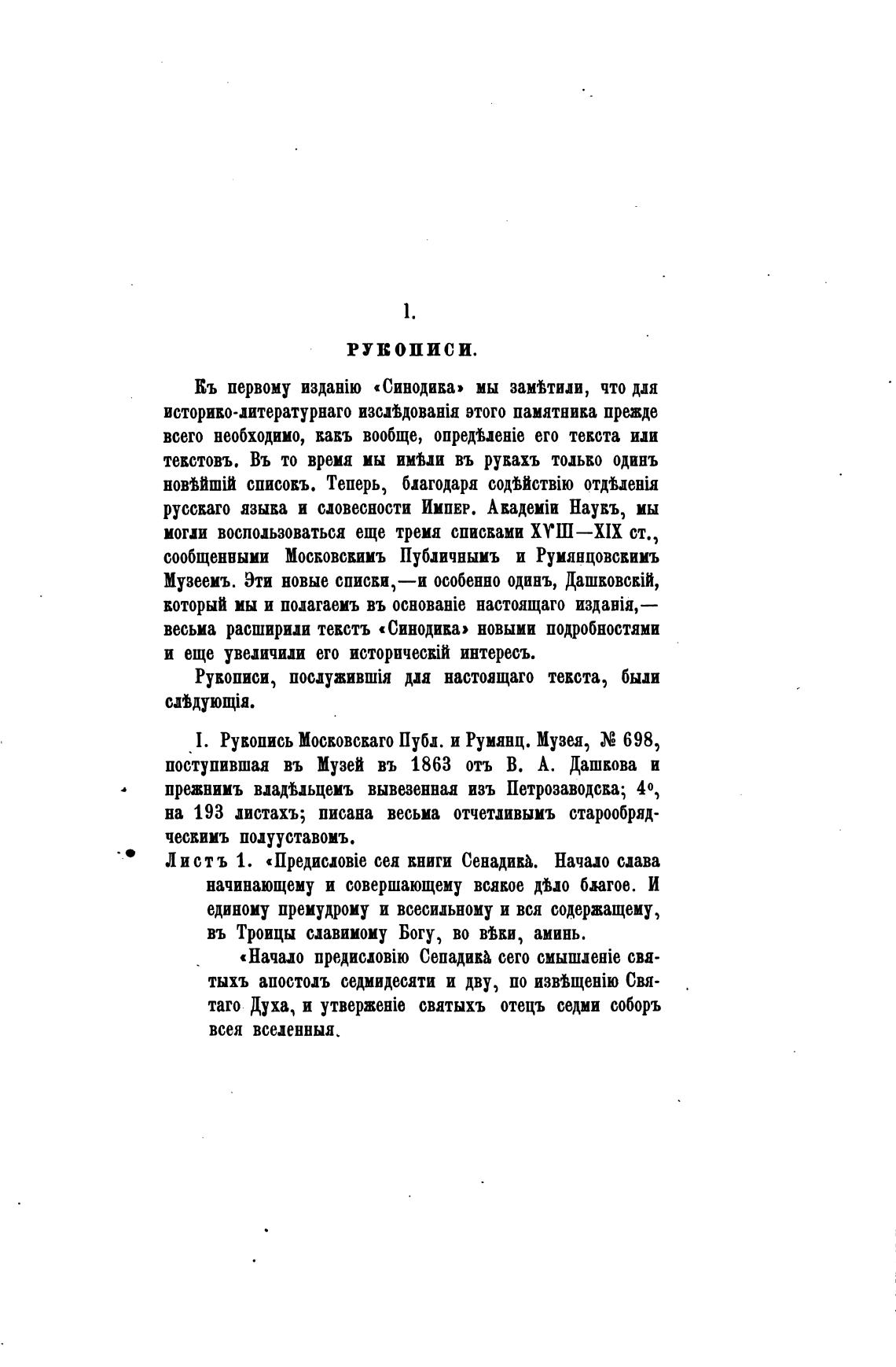 1. Рукопись Московскаго Публ и Руманц. Музея, 698,