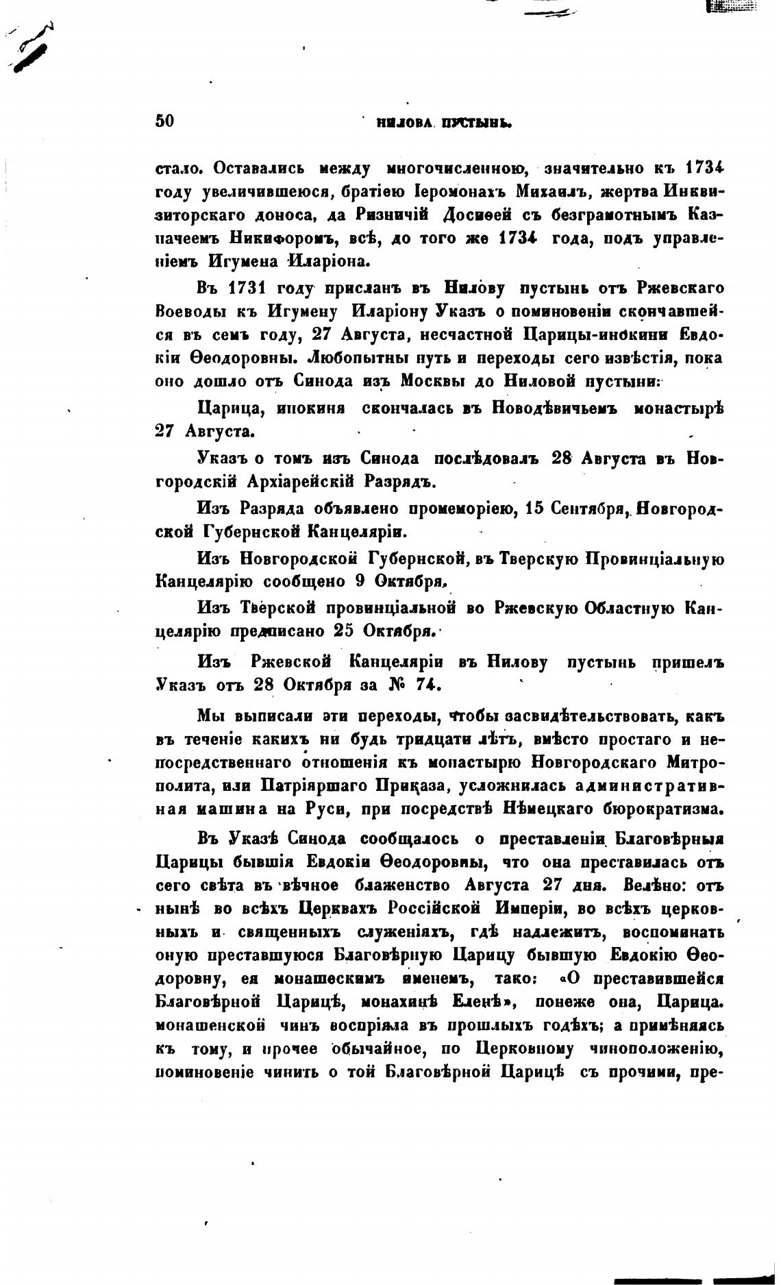 оно дошло отъ Синода из.ъ Москвы до Ниловой пустыни: