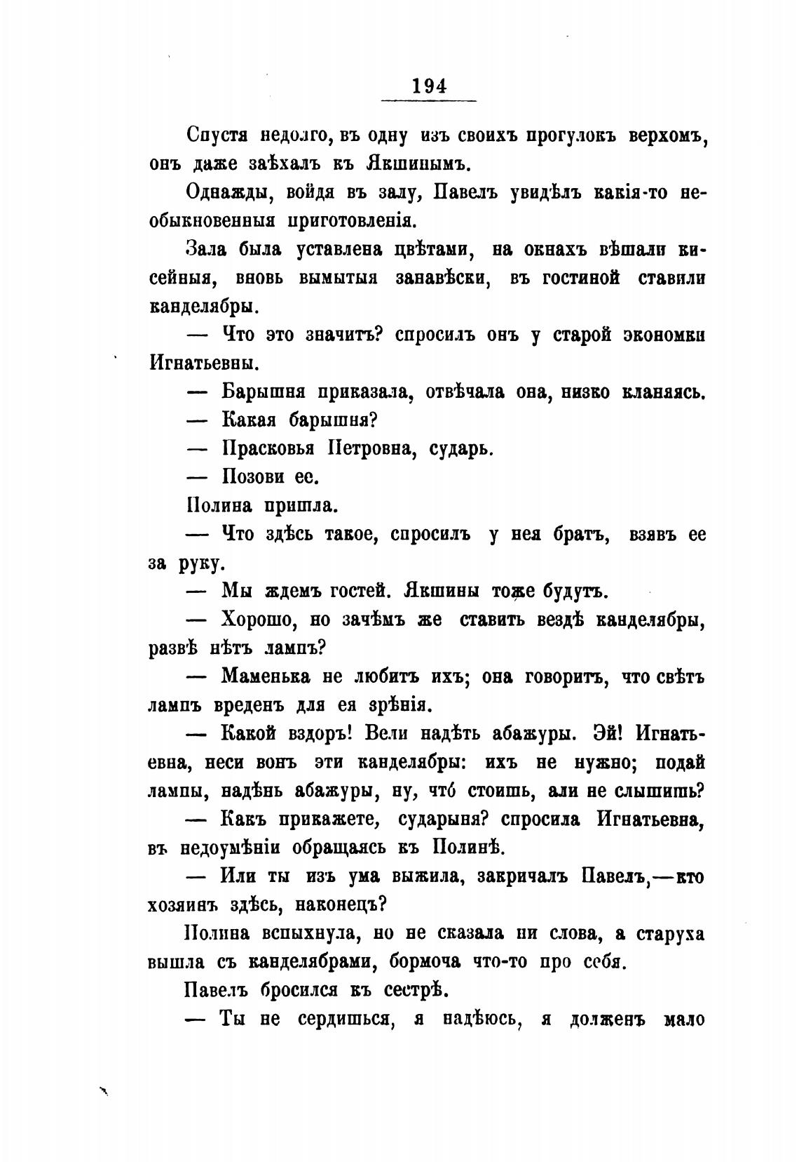 Кань прикажете, сударыня? спросила Игнатьевна,
