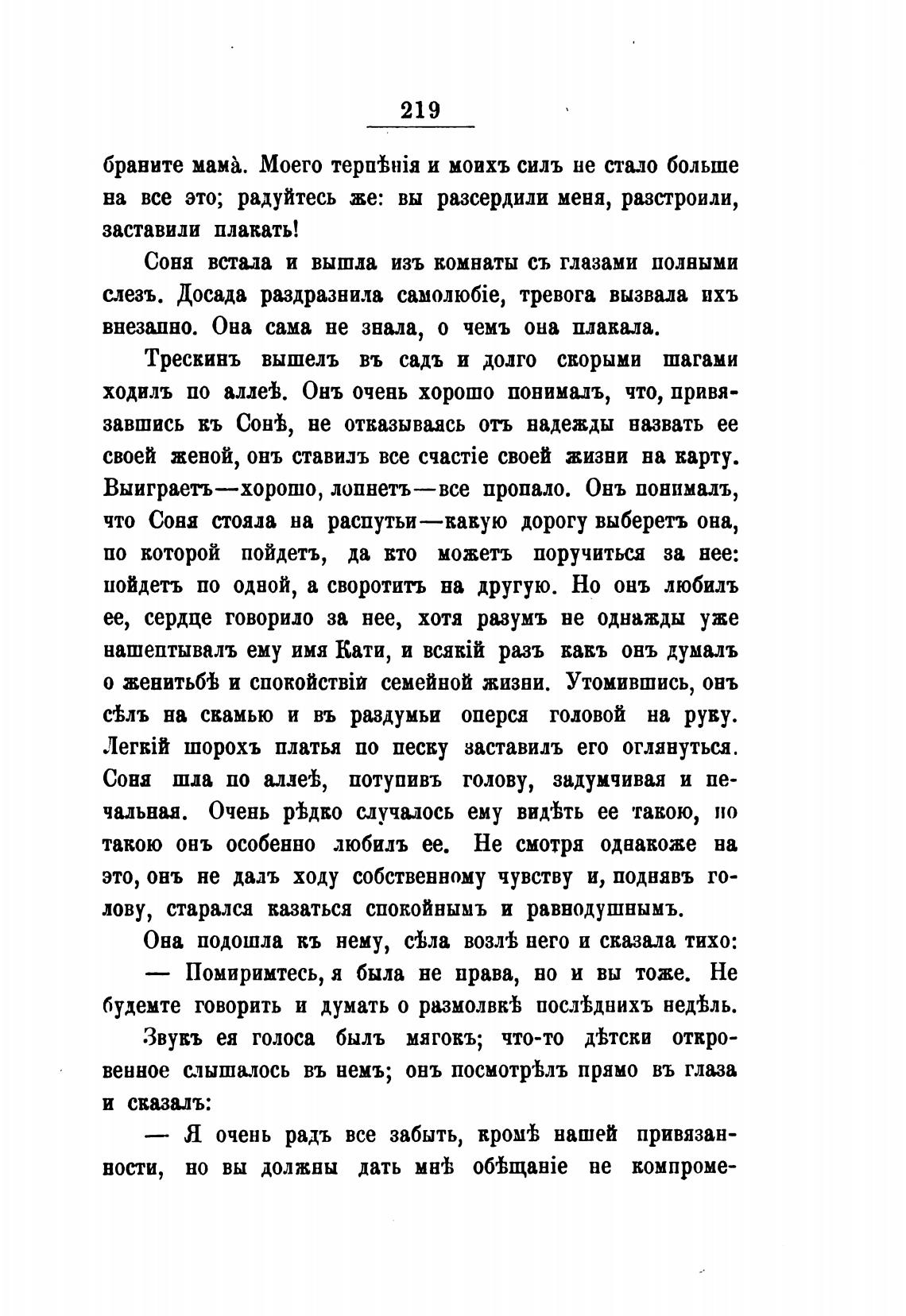 будемте говорить и думать о размолвк•Ь пос.тЬднихъ не$ль.