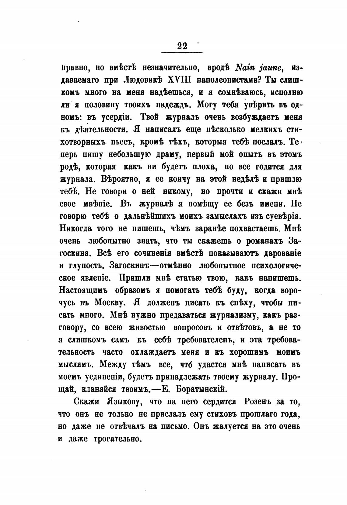 Скажи Языкову, что ва него сердится Розевъ за то,