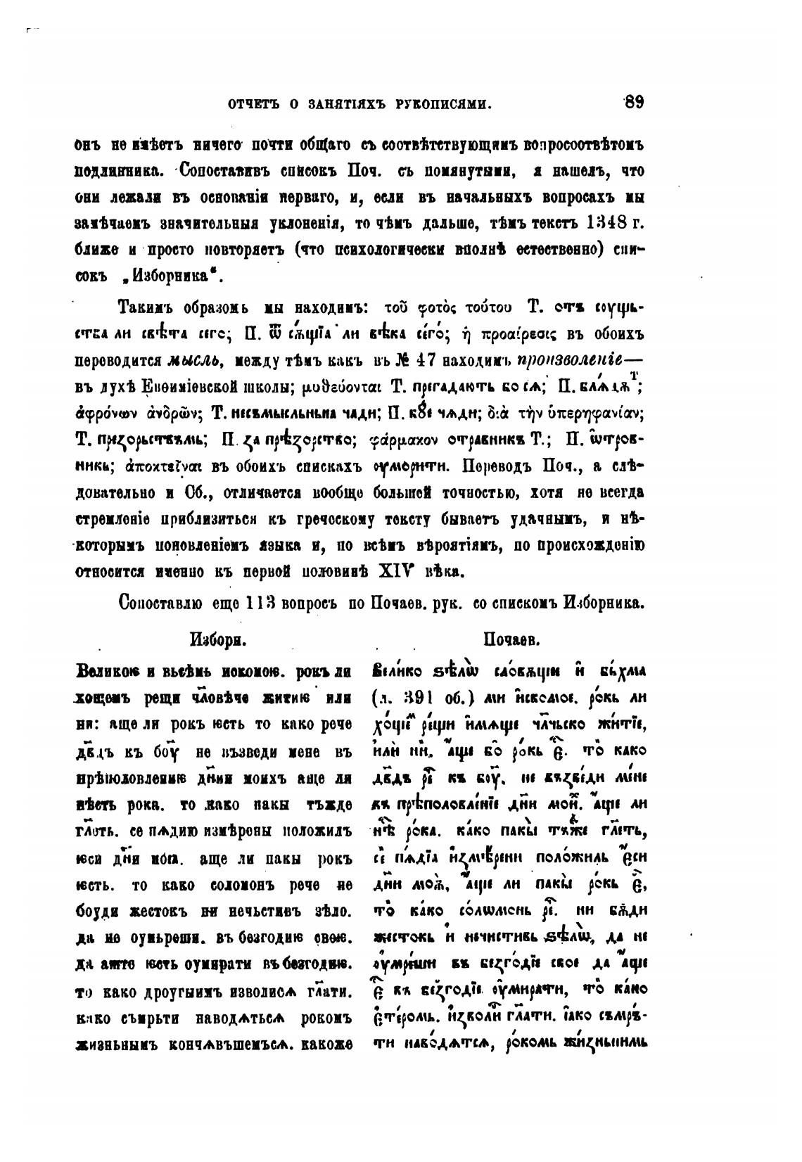Сопоставлю еще вопросъ по Почаев. руњ. со спискоиъ Изборника.