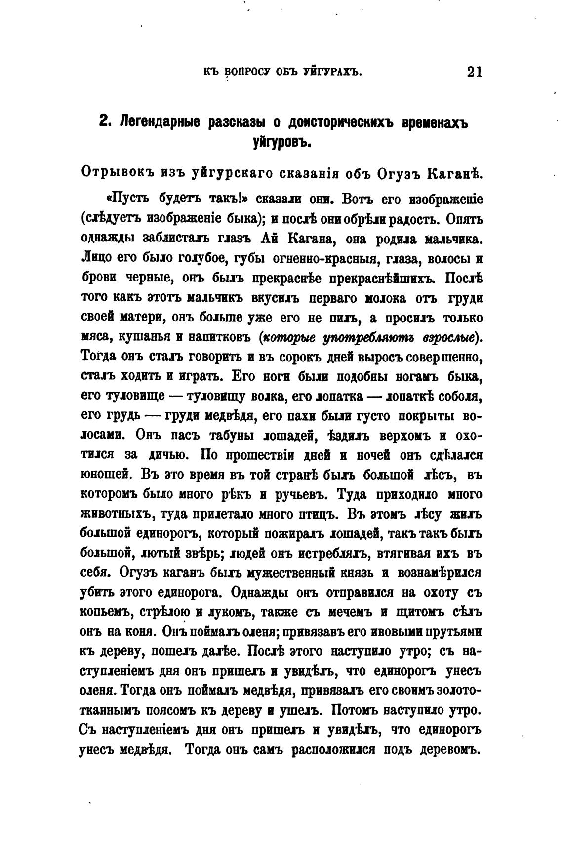 Отрывокъ изъ уйгурскаго объ Огузъ Каган'Ь.