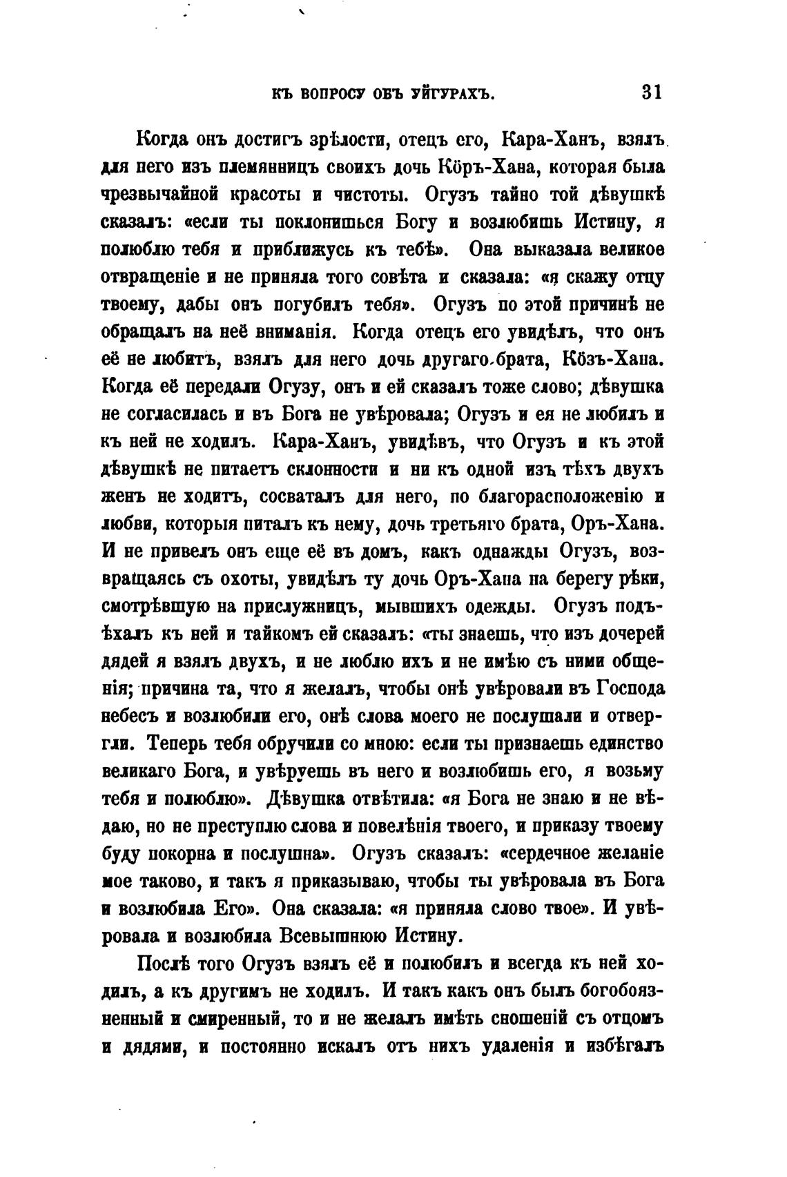 Когда её передал Огузу, онъ и ей сказалъ тоже слово; д%вушка