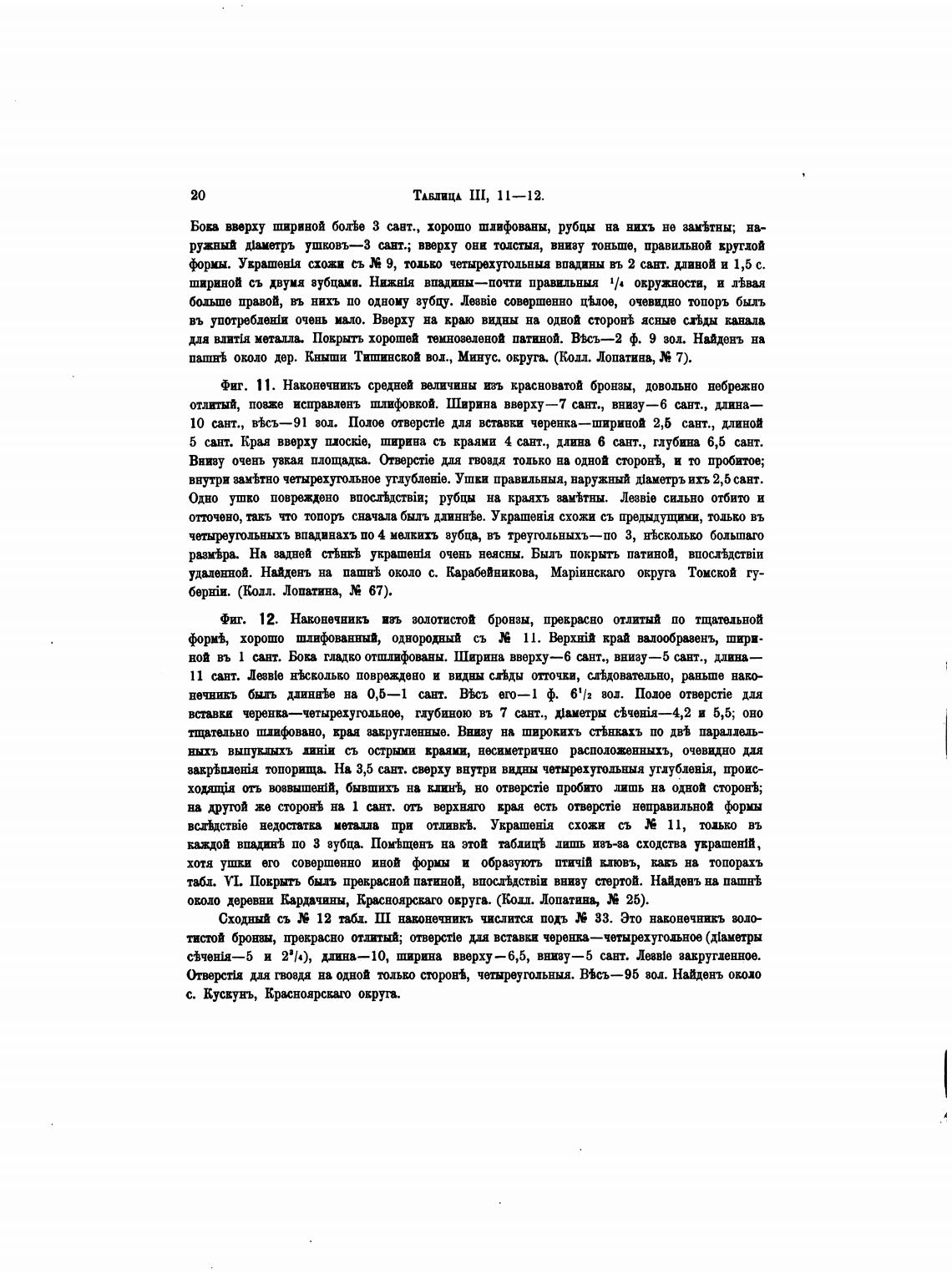 удаленной. Найденъ на паштЬ около с. Карабйнивова, Матинскаго округа Томской гу-