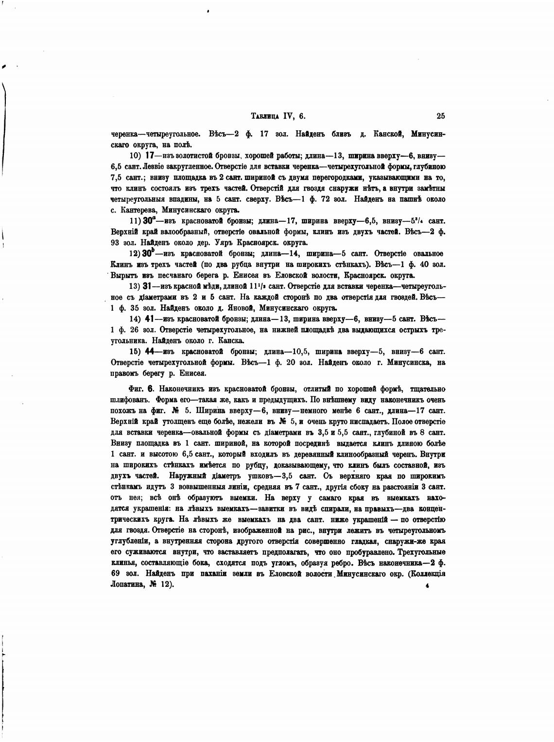 (hwpcTie четырхугольной Цюриы. Ист—1 ф. 20 вол Найденъ оволо т. Минусинска, на