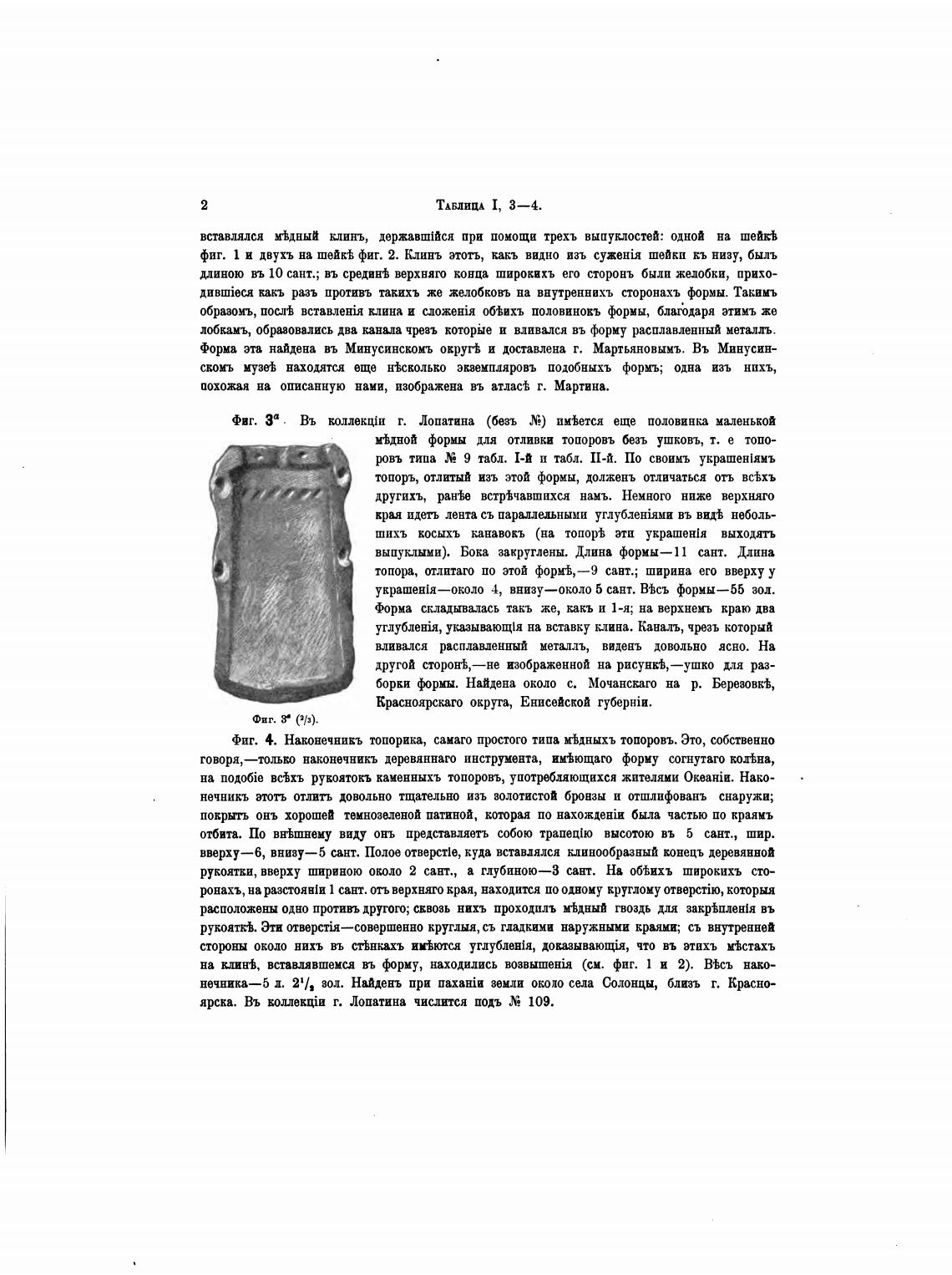Фиг. 4. Наконечнивъ топорика, самаго щЖТ0го типа М'Ьдныхъ топоровъ. Это, собственно