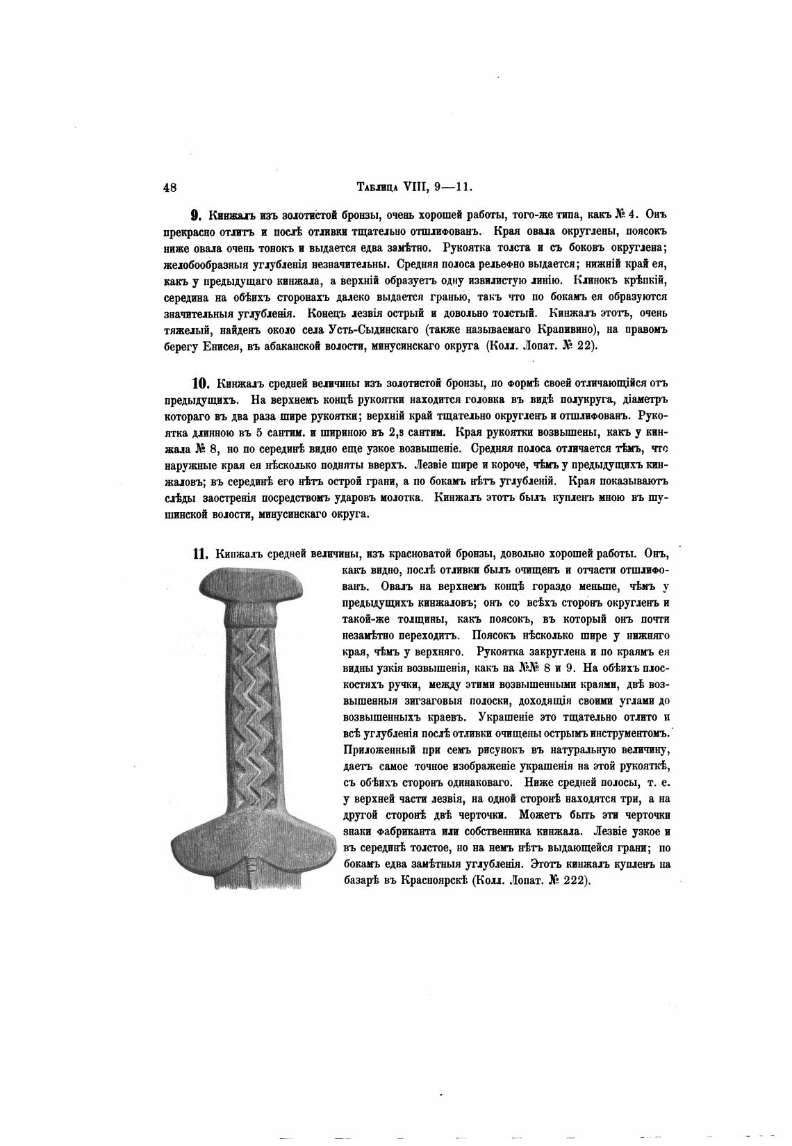10. Кинжаль срдней велчины изъ зохотист•ой бронзы, по фор“ своей отъ