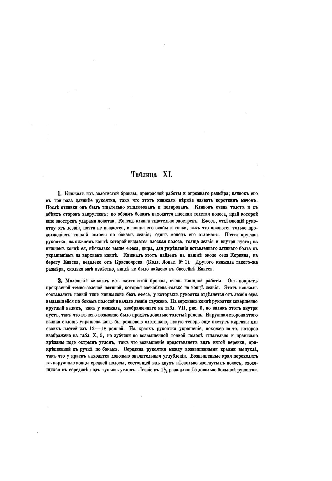 берегу Енисея, недалеко отъ Красноярка (Кош. Лопат. Х2 1). Другого кинжиа такого-же