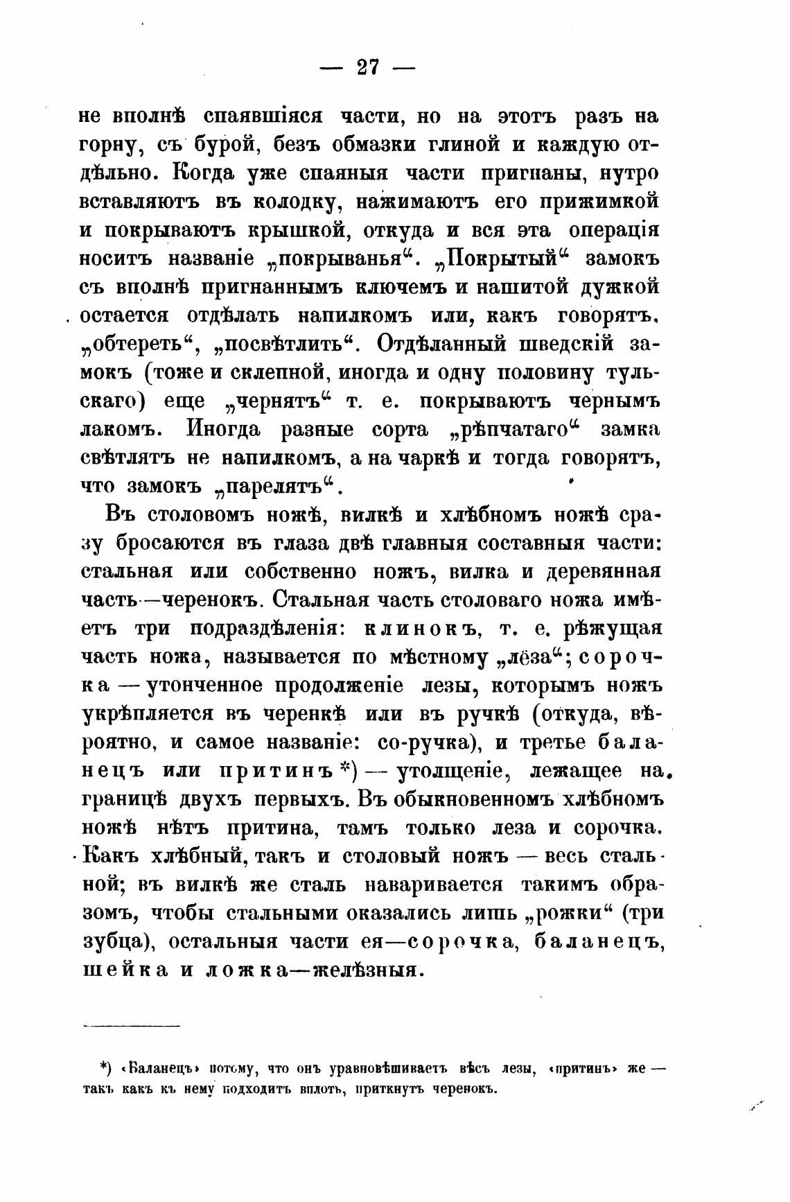 часть—черенокъ. Стальная часть столоваго ножа
