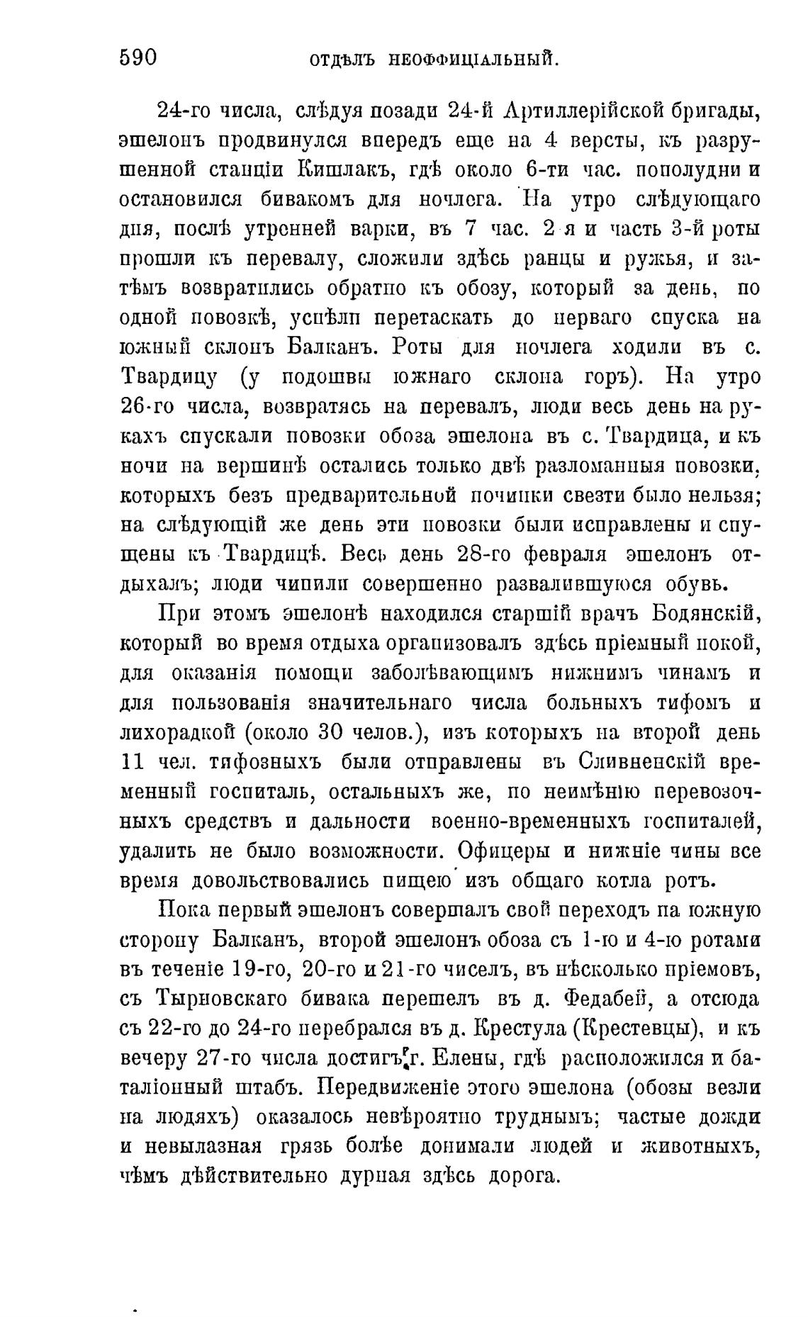 сторону Балканъ, второй эшелонъ обоза съ 1-ю и 4-ю ротами