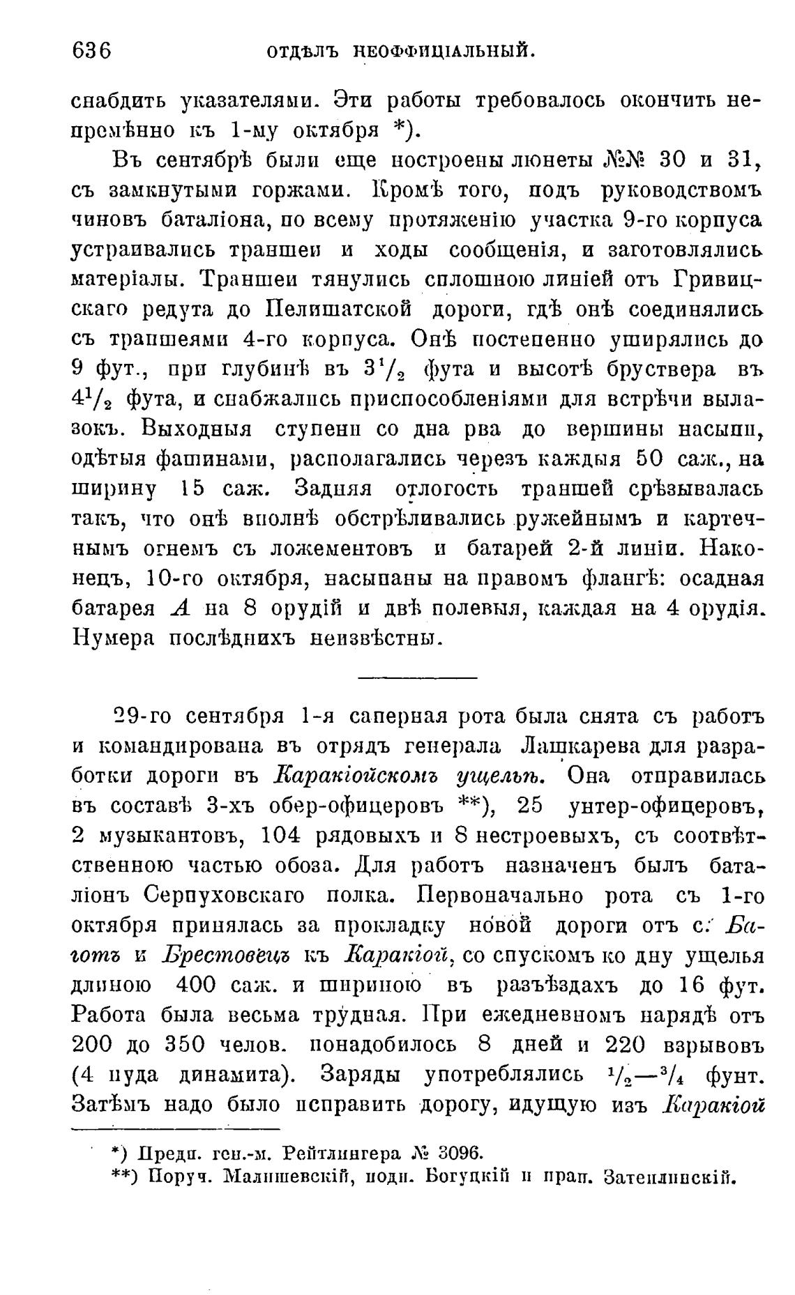 ственною частью обоза. Для работъ назначень быль бата-
