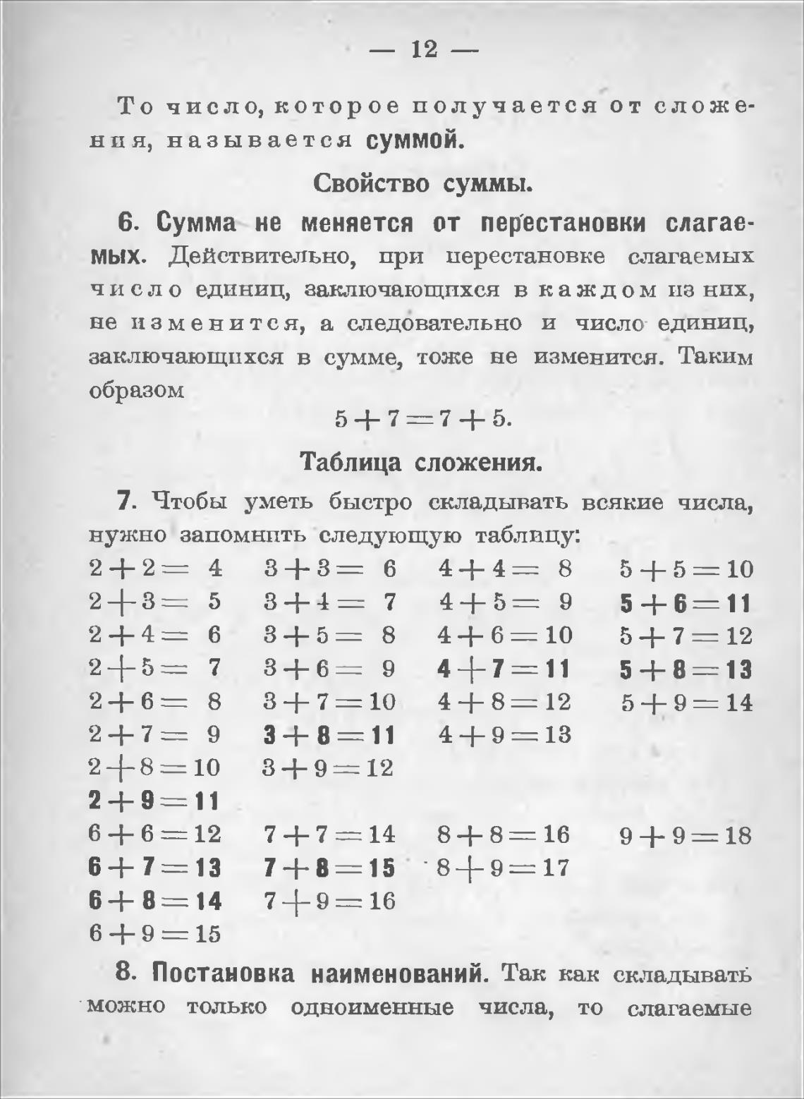 Таблица сложения.