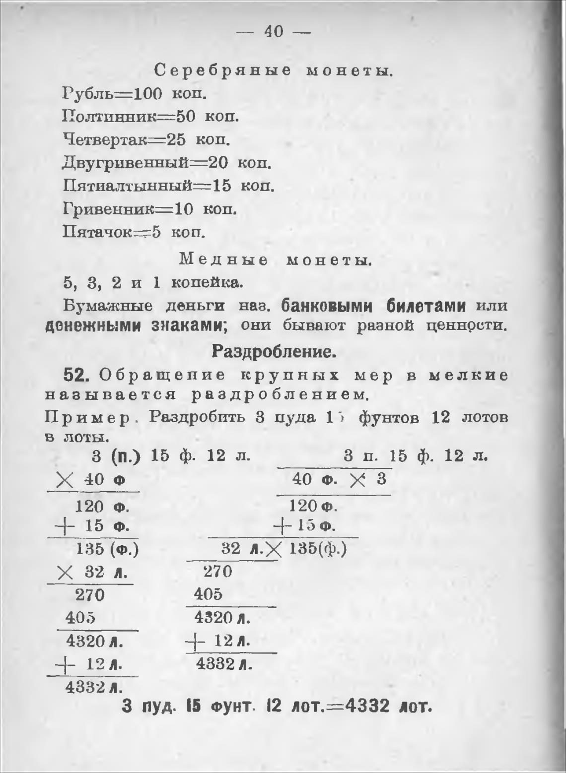 52. Обращение крупных мер в мелкие