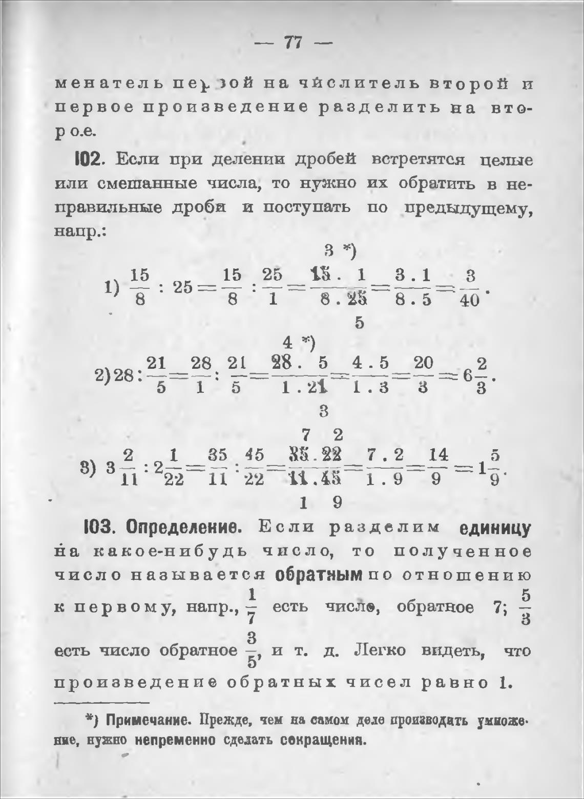 102. Если при делении дробей встретятся целые